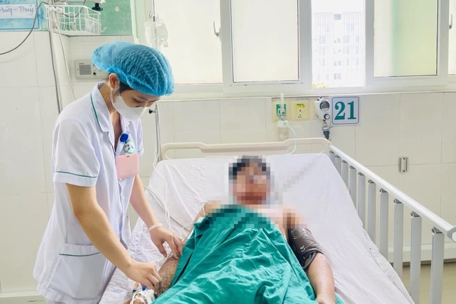 Người bệnh đang được tích cực điều trị tại Bệnh viện Đa khoa tỉnh Quảng Ngãi 2. Ảnh: BVCC.