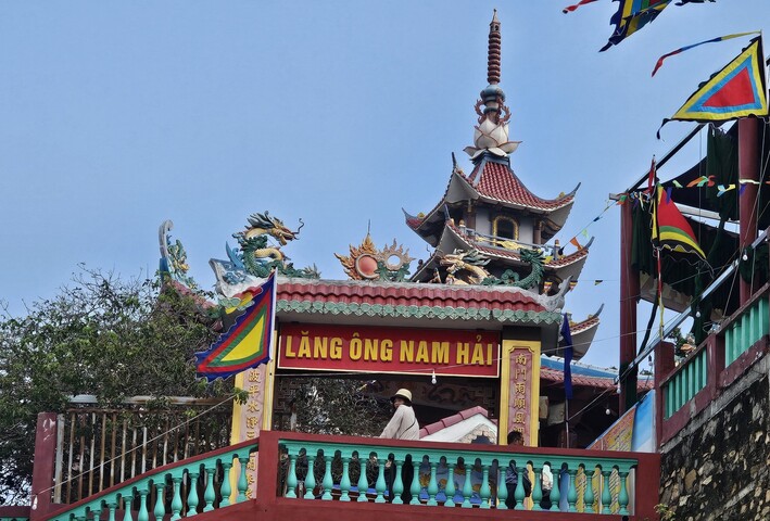 Con đường dẫn đến Lăng Ông Nam Hải ngày nay là những bậc tam cấp bằng đá, tô đậm hai bên bằng những hàng cây xanh tự nhiên của rừng núi Đơn. Lăng Ông tọa lạc vững chắc trên hệ thống tường thành, với cổng lăng và điện thờ mang đậm nét cổ kính và sự tôn nghiêm. Lăng Ông Nam Hải là nơi bảo tồn và lưu giữ di cốt và thờ cúng cá Ông với niềm kính trọng, yêu thương trong tiềm thức của ngư dân vạn đầm ven biển xã Nhơn Lý.