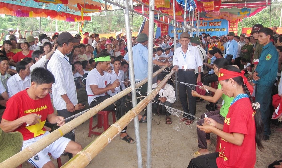 Phần thi đan lưới được làng Vịnh Mốc tổ chức trong Lễ hội Cầu ngư.