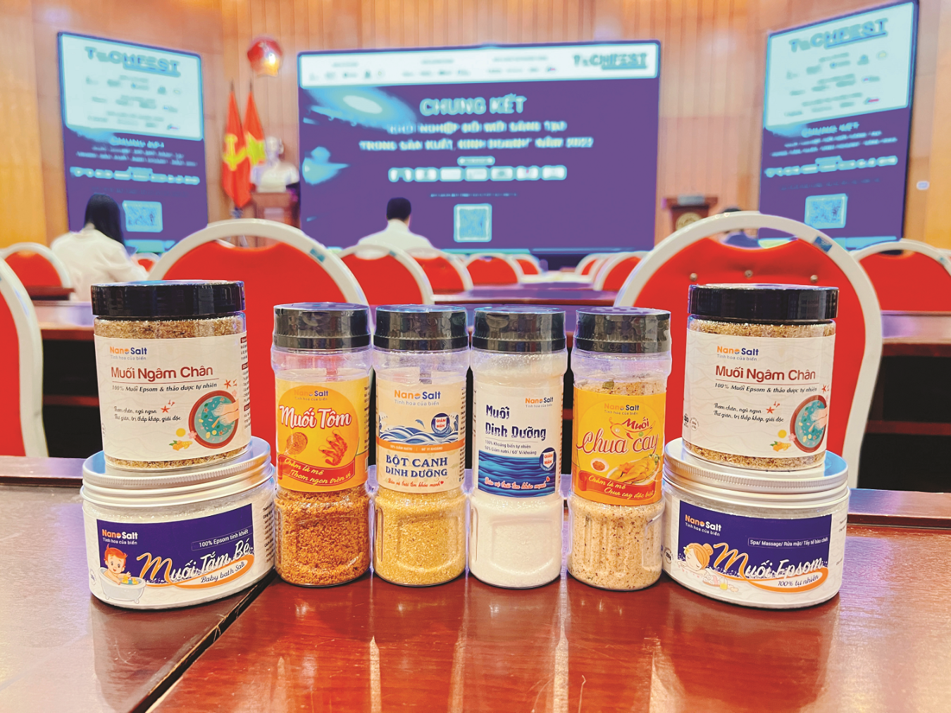 Thương hiệu NanoSalt ra đời để trả lời cho bằng hết những câu hỏi lẫn gửi gắm những ước mong cho hạt muối quê mình của Hồ Xuân Vinh. NanoSalt là viết tắt của mấy chữ “Nghe An Ocean Salt” (Muối biển Nghệ An). Tôi nói, ở một cách hiểu khác, chữ “nano” gợi ra một cái gì đó liên quan đến công nghệ. Vừa hay, muối giảm mặn của Hồ Xuân Vinh được tạo nên từ công nghệ. Tên là muối giảm mặn nhưng vẫn bổ sung được các vi khoáng khác.