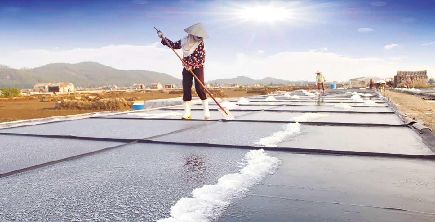 Những ngày sau Tết hãy còn “mùng”, vài diêm dân xã Quỳnh Thuận (huyện Quỳnh Lưu, tỉnh Nghệ An) đã phóng xe máy vèo vèo ra thăm ruộng, chờ nắng hửng lên sau những ngày nằm lạnh để cào những hạt muối mùa xuân. Không tất bật, mồ hôi nhễ nhại như chính vụ, tức khoảng thời gian từ tháng 4 cho tới hết tháng 6, tháng 7 âm lịch. Cùng với mùa mưa bão, đây có lẽ là khoảng ngày “an nhàn” nhất trong năm của những người bám nắng để sinh nhai.