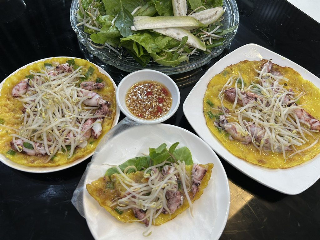 Bánh xèo mực, cắn một miếng nghe vị biển thơm nồng