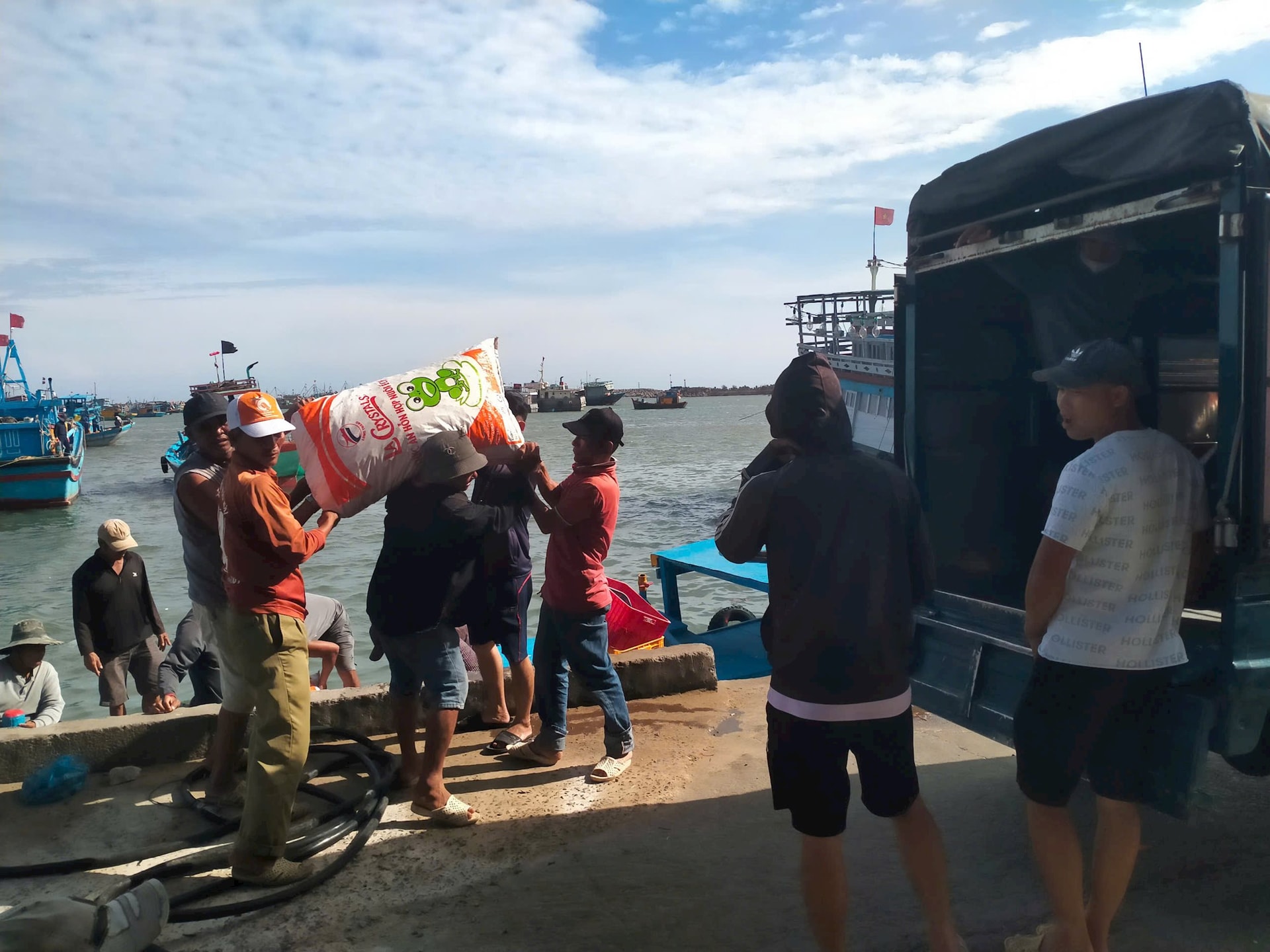 Khoảng 2 – 3 giờ chiều, có mặt tại khu vực Cảng cá Phú Hải (phường Phú Hài, TP. Phan Thiết), chúng tôi ghi nhận nhiều tàu thuyền của bà con ngư dân đang tấp nập ra vào. Trên khoang tàu chở đầy các bao tải lớn chứa sò lông các loại vừa đánh bắt được ở ngoài khơi, đưa vào bến để bán cho thương lái vận chuyển đi các tỉnh, thành tiêu thụ. Nhiều thanh niên đang đợi sẵn trên bến, đợi tàu cập vào sẽ vác sò lông từ dưới tàu lên các xe đông lạnh đợi sẵn. Nhiều thương lái thu mua chở về Chí Công phân loại, từ đó đóng vào bao tải, ướp đá lạnh… rồi đưa đi tiêu thụ ở nhiều tỉnh, thành.