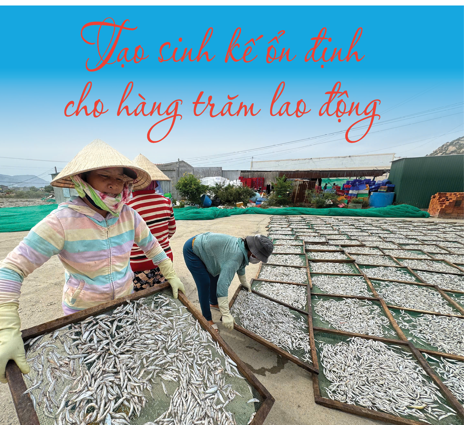 Nhờ thời tiết thuận lợi, mùa này cá cơm nhiều, ngư dân chỉ cần “trúng luồng” là lưới nặng trĩu, có ngày ghe cập bờ đầy khoang. Các cơ sở chế biến lớn thường phải huy động hơn 200 nhân công làm liên tục từ tờ mờ sáng đến khuya. Bà Trần Thị Loan – Giám đốc Công ty TNHH Thủy sản khô Gia Bảo (thôn Lạc Nghiệp 1, xã Cà Ná) cho biết: “Vào đúng mùa vụ, lượng cá nhiều, chúng tôi phải tăng thêm ca đêm để kịp các đơn hàng. Mỗi ngày, cơ sở hấp khoảng 2 – 3 tấn cá tươi, cứ 3kg cá tươi sau khi ra thành phẩm được 1kg khô. Nhờ chú trọng chất lượng sản phẩm, duy trì nguồn khách hàng ổn định, doanh thu hằng năm của công ty luôn đạt từ 20 đến 30 tỷ đồng”.