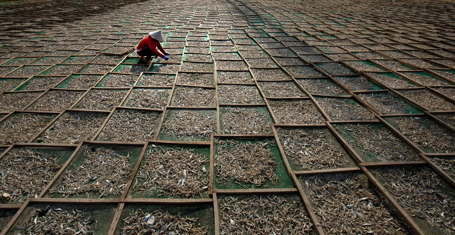 Cá hấp được đưa ra sân phơi, đón nắng và gió biển 3 – 5 giờ cho đến khi khô giòn, thơm nức.