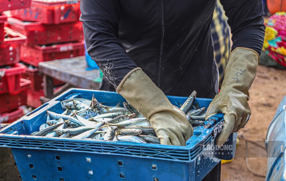 Cá nục đánh bắt ngoài khơi được ngư dân đưa vào bờ từ sáng sớm. Thương lái chờ sẵn, tạo nên không khí thu mua tấp nập, sôi động.