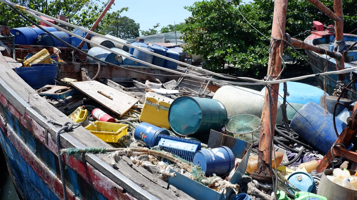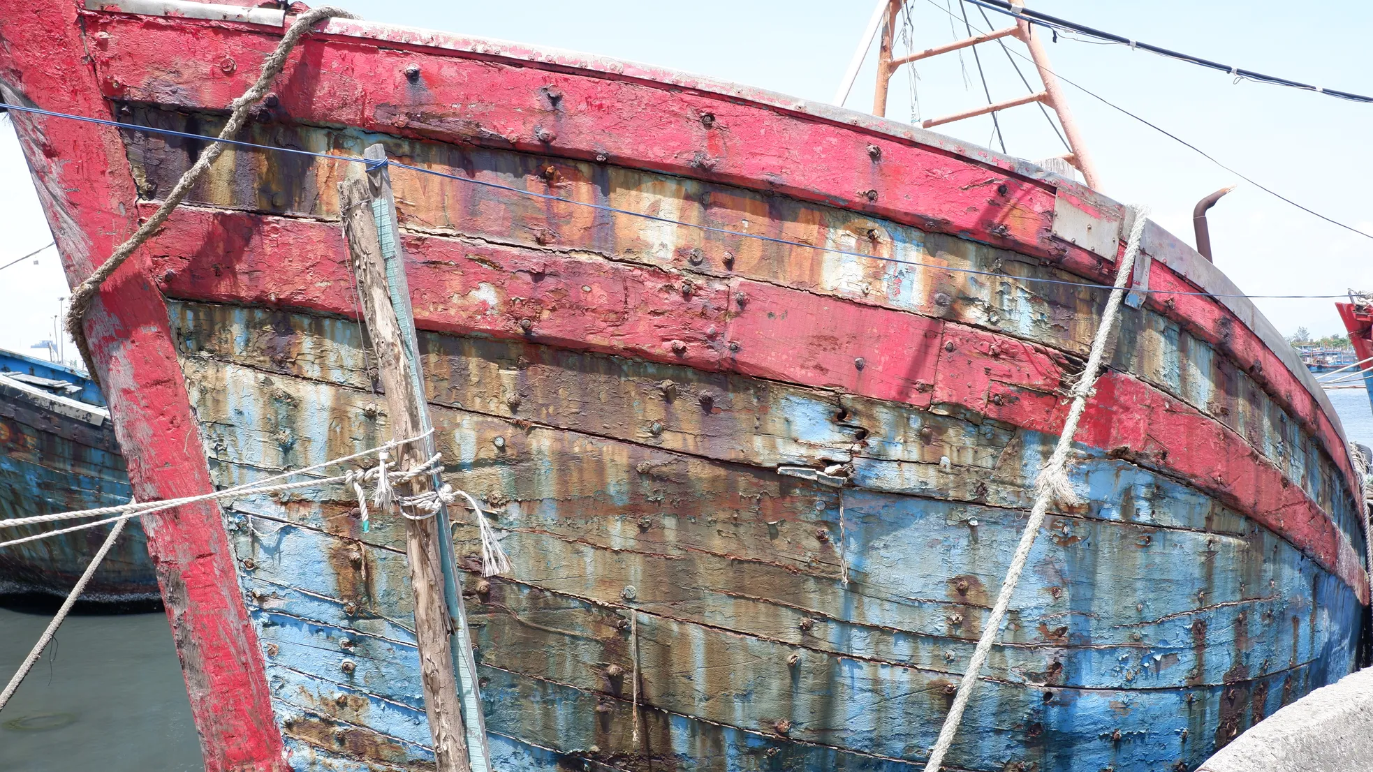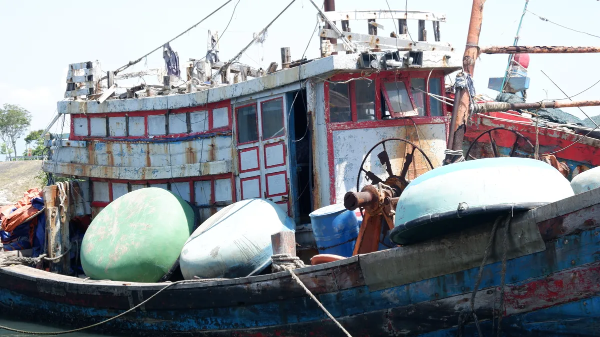 Tại khu vực gần Đội Cảnh sát PCCC&CNCH trên sông, có 3 con tàu gỗ lớn công suất hơn 500CV chỉ còn trơ xác. Các ngư dân địa phương cho hay, đây là 3 trong số các con tàu chờ ngân hàng phát mại tài sản.Tương tự, tại khu vực đường Lê Đức Thọ, 3 tàu cá khác cũng trong tình cảnh tương tự, bỏ không, hư hỏng nhiều năm nay.