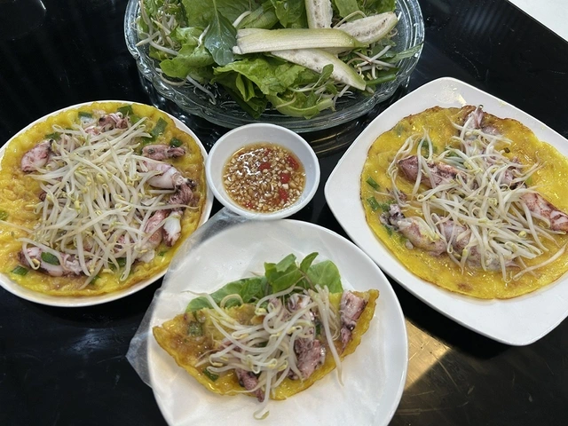 Chiếc bánh nhỏ xinh vàng ươm, giòn rụm, bên trong là những con mực sữa tươi rói vừa chín tới. Bánh xèo mực, món ăn nghe bình dị nhưng mang trong mình cả một mùa...