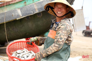 Bà con ngư dân xã Xuân Yên (Nghi Xuân – Hà Tĩnh) đang tranh thủ thời tiết thuận lợi, tích cực bám biển để mang về những mẻ cá trích tươi ngon. Hữu Trung Báo...