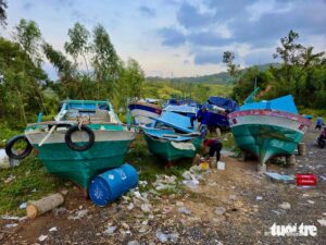 Hàng trăm tàu hư hỏng sau bão số 13 được cẩu lên bờ sửa gấp, các xưởng quá tải, thợ làm xuyên ngày đêm, còn chủ tàu thì nóng ruột vì cần sớm trở lại...