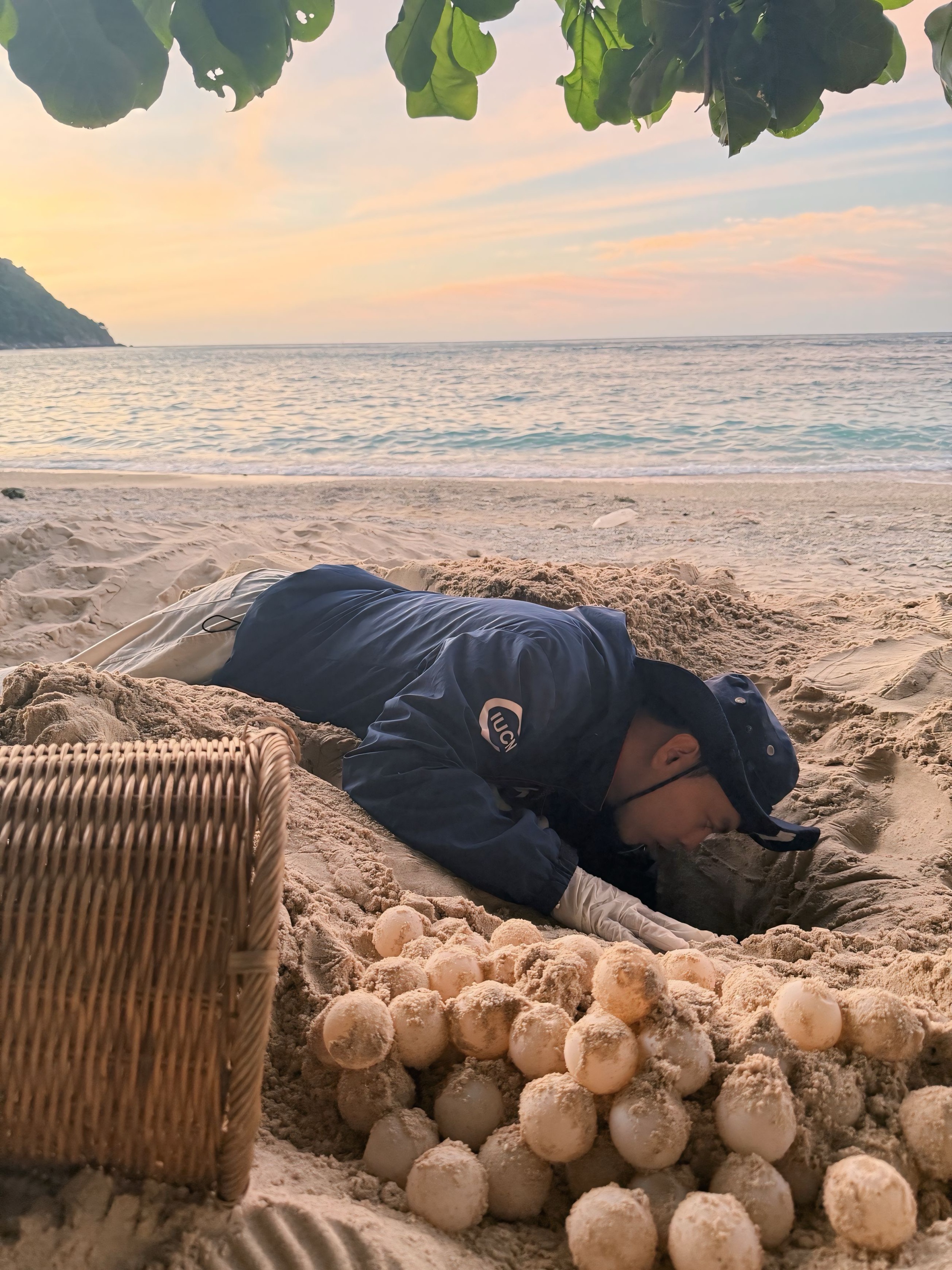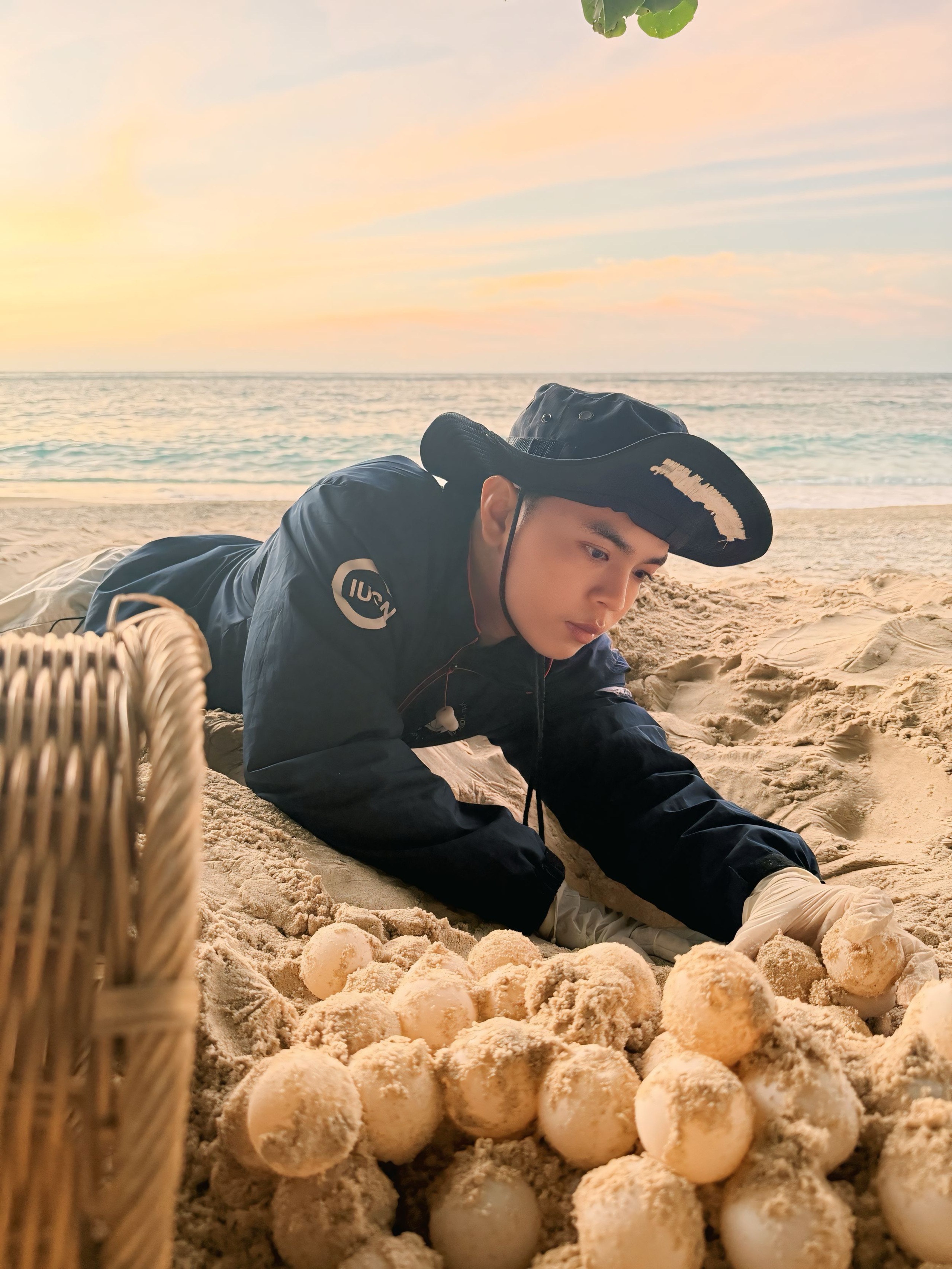 Giữa màn đêm tĩnh mịch, tôi thì thầm ‘Em làm được không?’, cậu ấy trả lời ‘Dạ được’. Sau vài bước chân, cậu khuỵu gối, bắt đầu bò trên cát, rồi từ từ hạ thấp người, trườn nhẹ nhàng, chậm rãi nhích lại gần mẹ rùa đang đào tổ. Cậu kiên nhẫn chờ đợi và cẩn thận lấy từng quả trứng, nâng niu cho vào sọt.