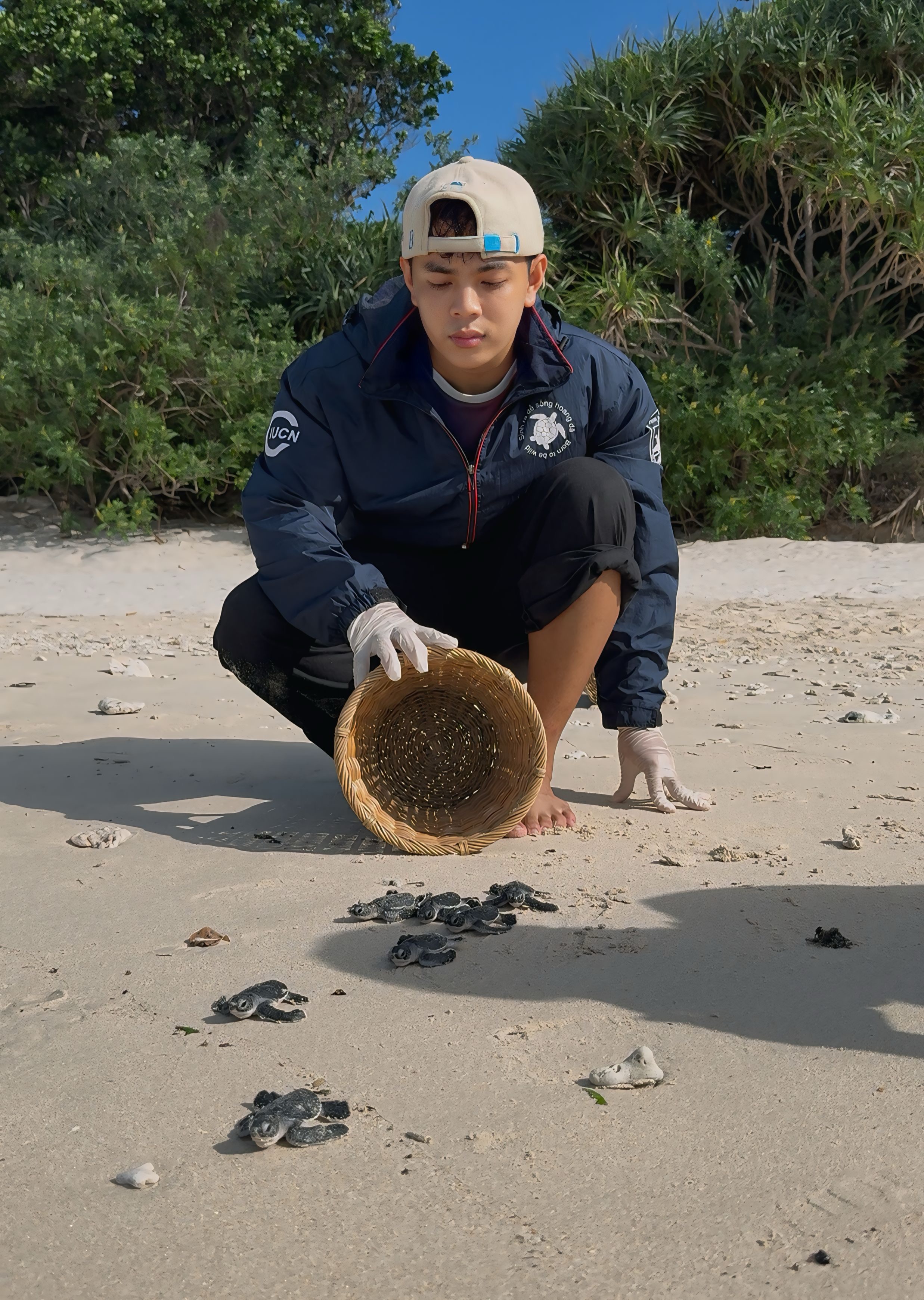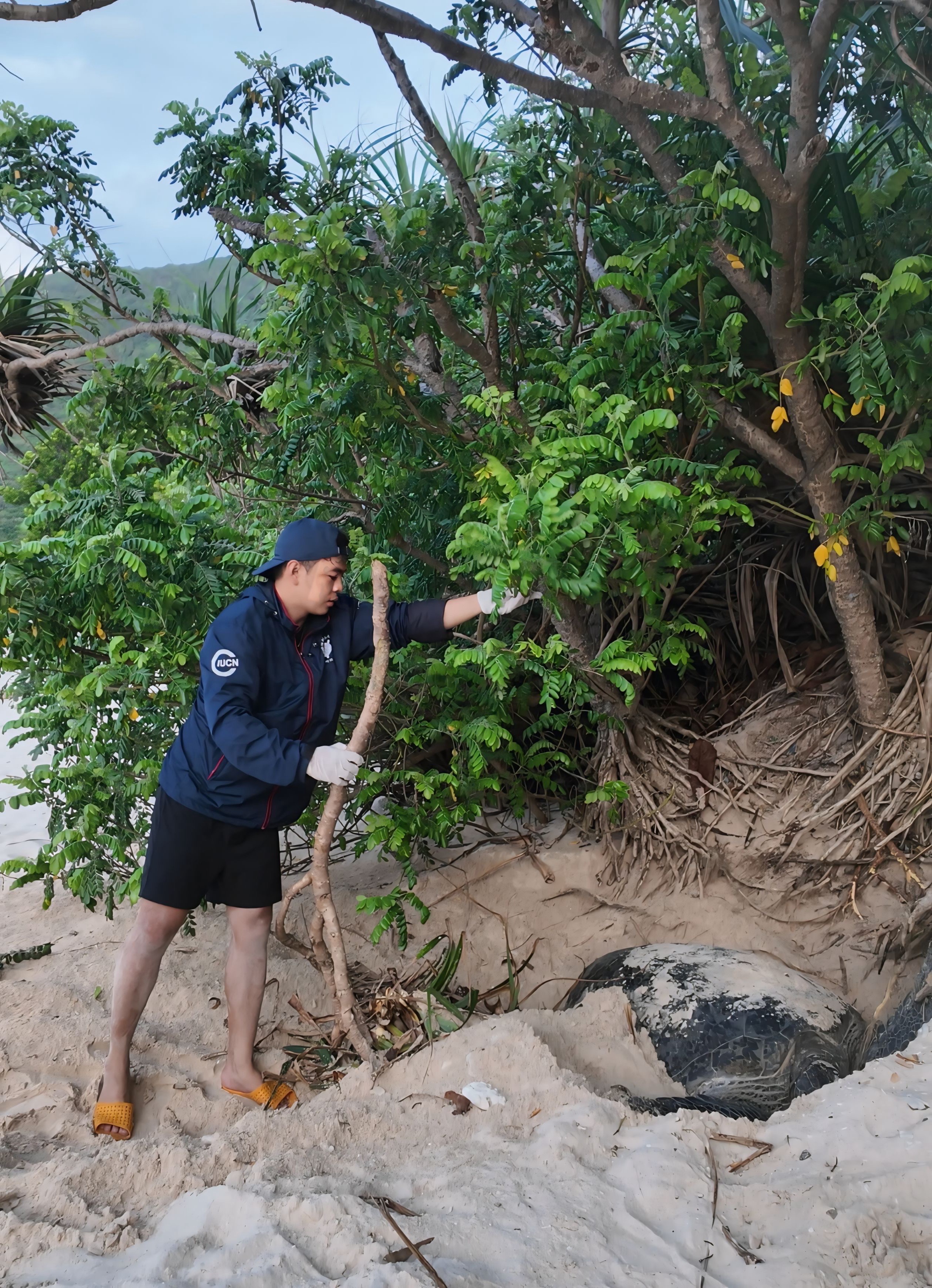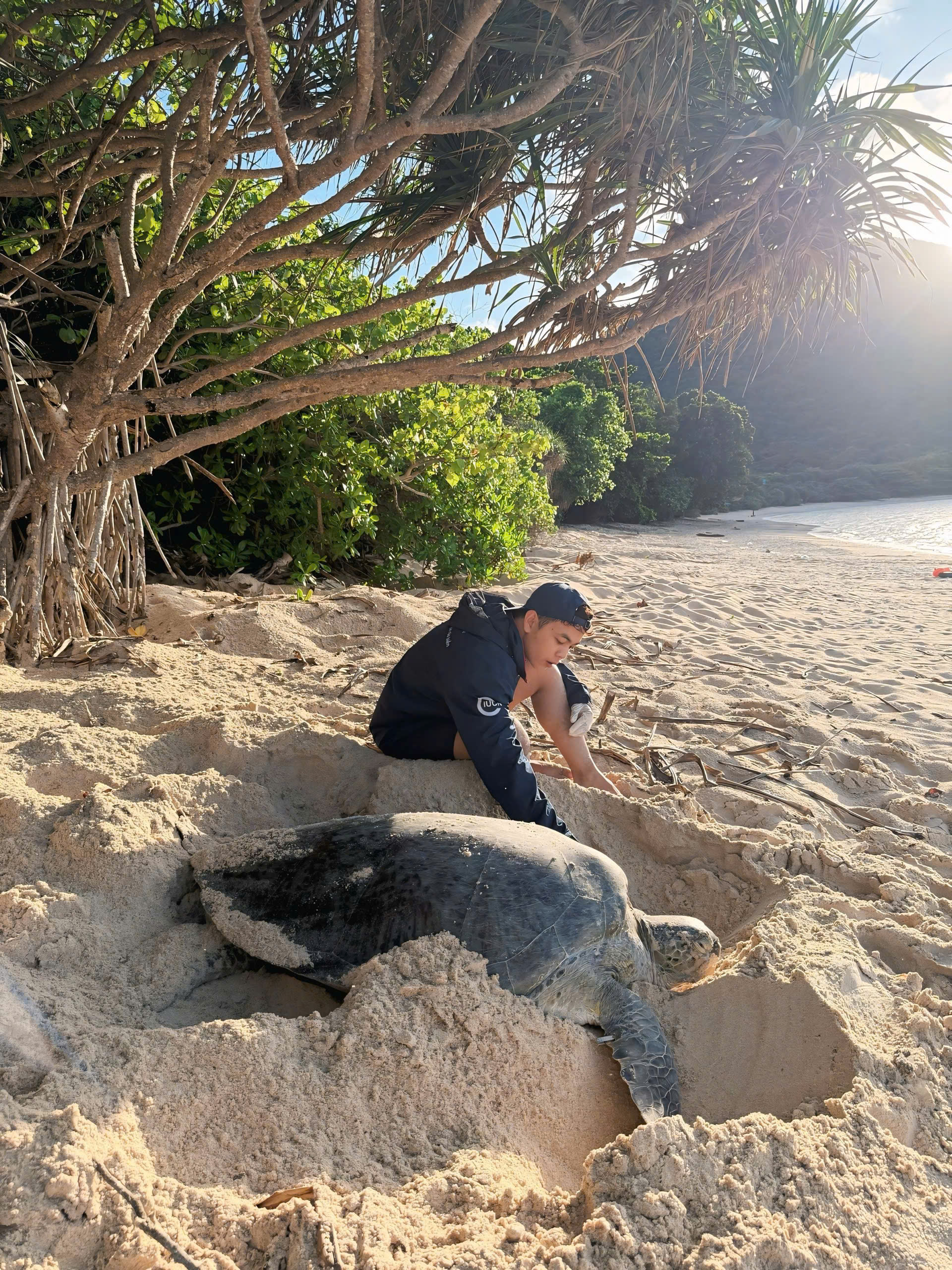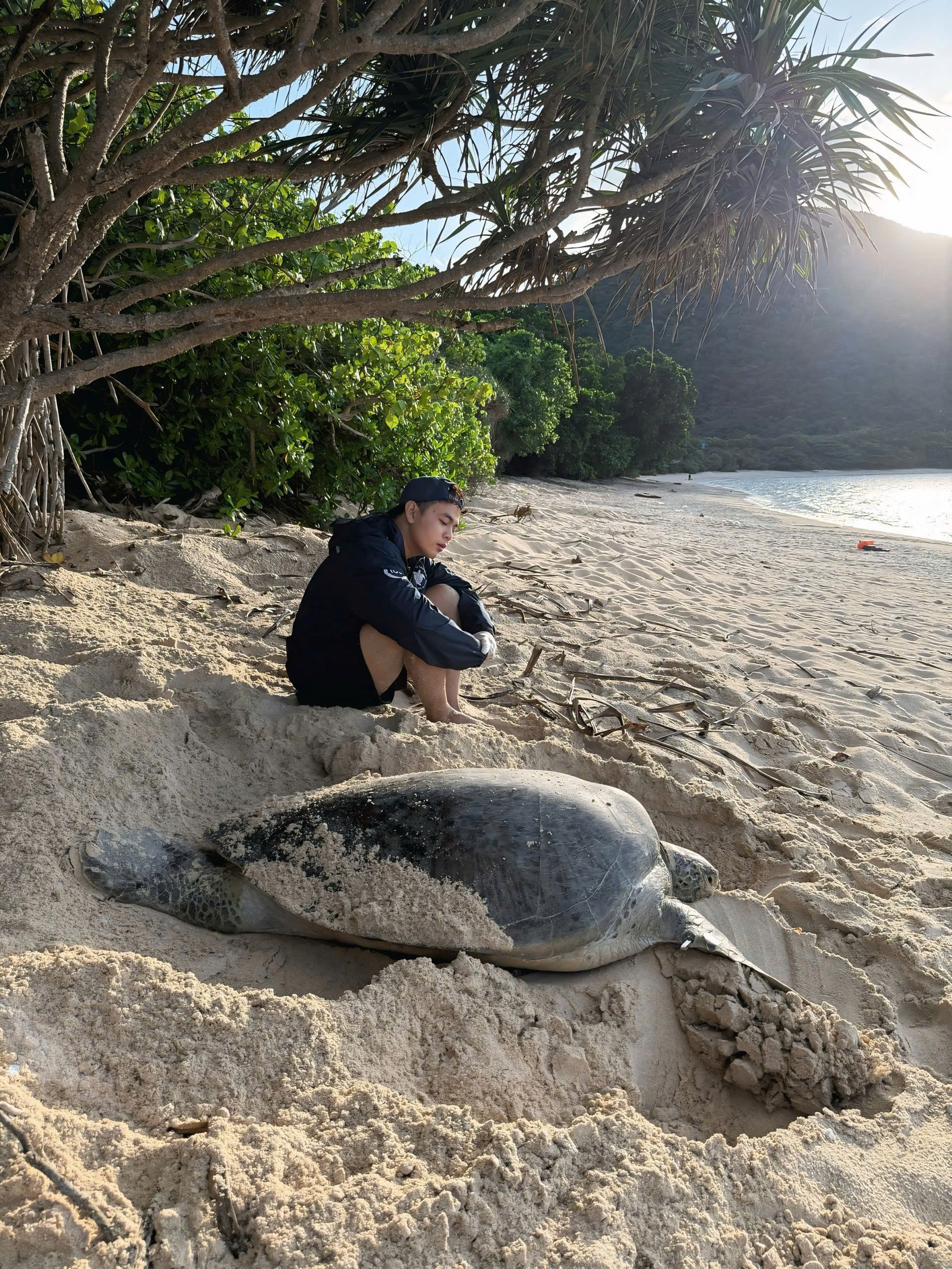 Nguyễn Văn Quốc Thái (28 tuổi) là tình nguyện viên bảo tồn rùa biển của IUCN (Liên minh Bảo tồn thiên nhiên quốc tế), tham gia hỗ trợ tại Trạm hòn Bảy Cạnh (Vườn quốc gia Côn Đảo, TP.HCM). Đợt tình nguyện kéo dài 12 ngày vào giữa tháng 6.2025 và đây là lần đầu tiên cậu ấy tham gia chương trình.