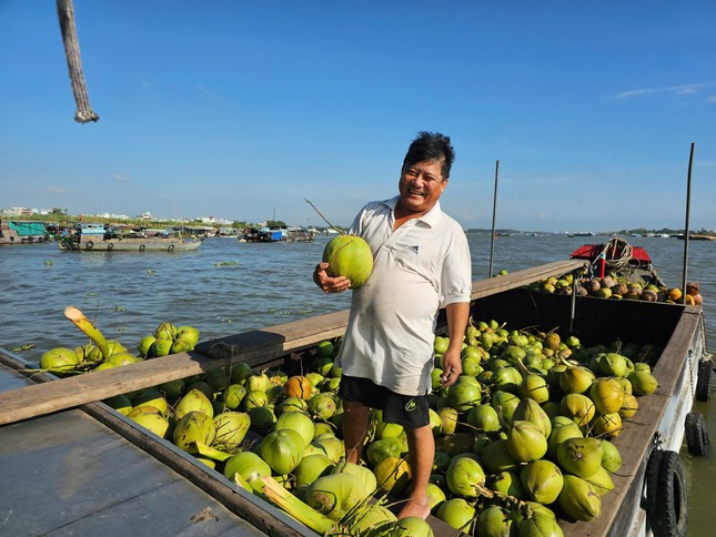 Ông Lê Văn Sơn bán dừa tại chợ nổi Long Xuyên, tỉnh An Giang.