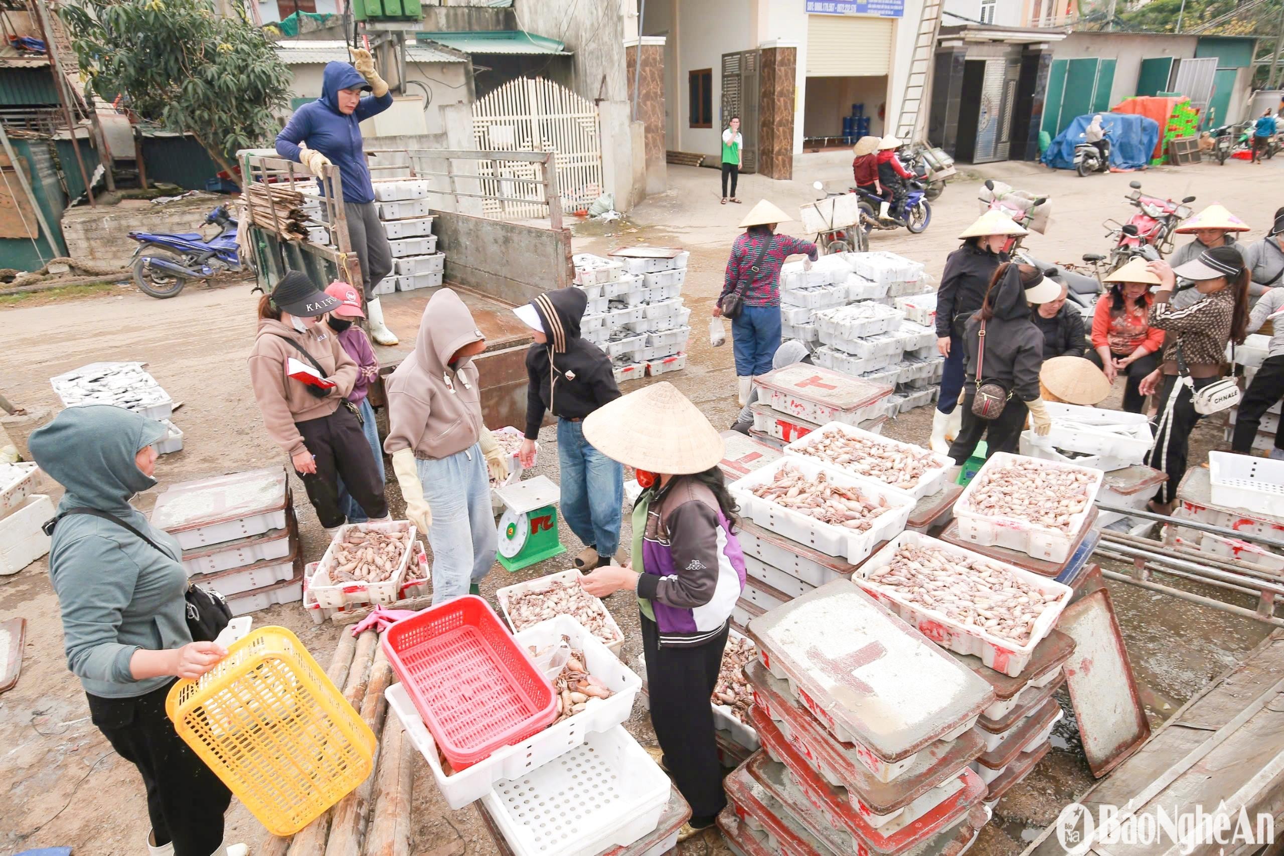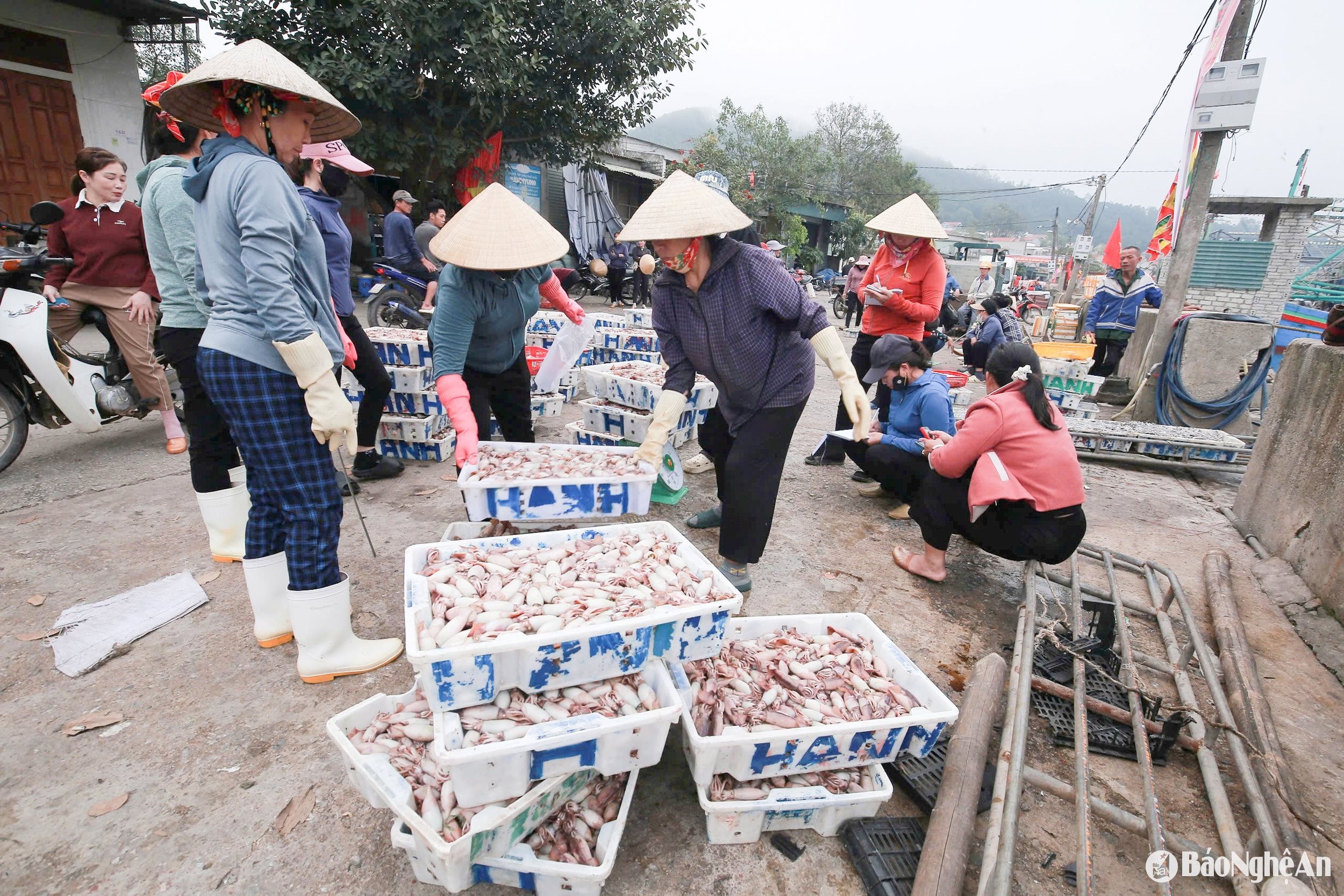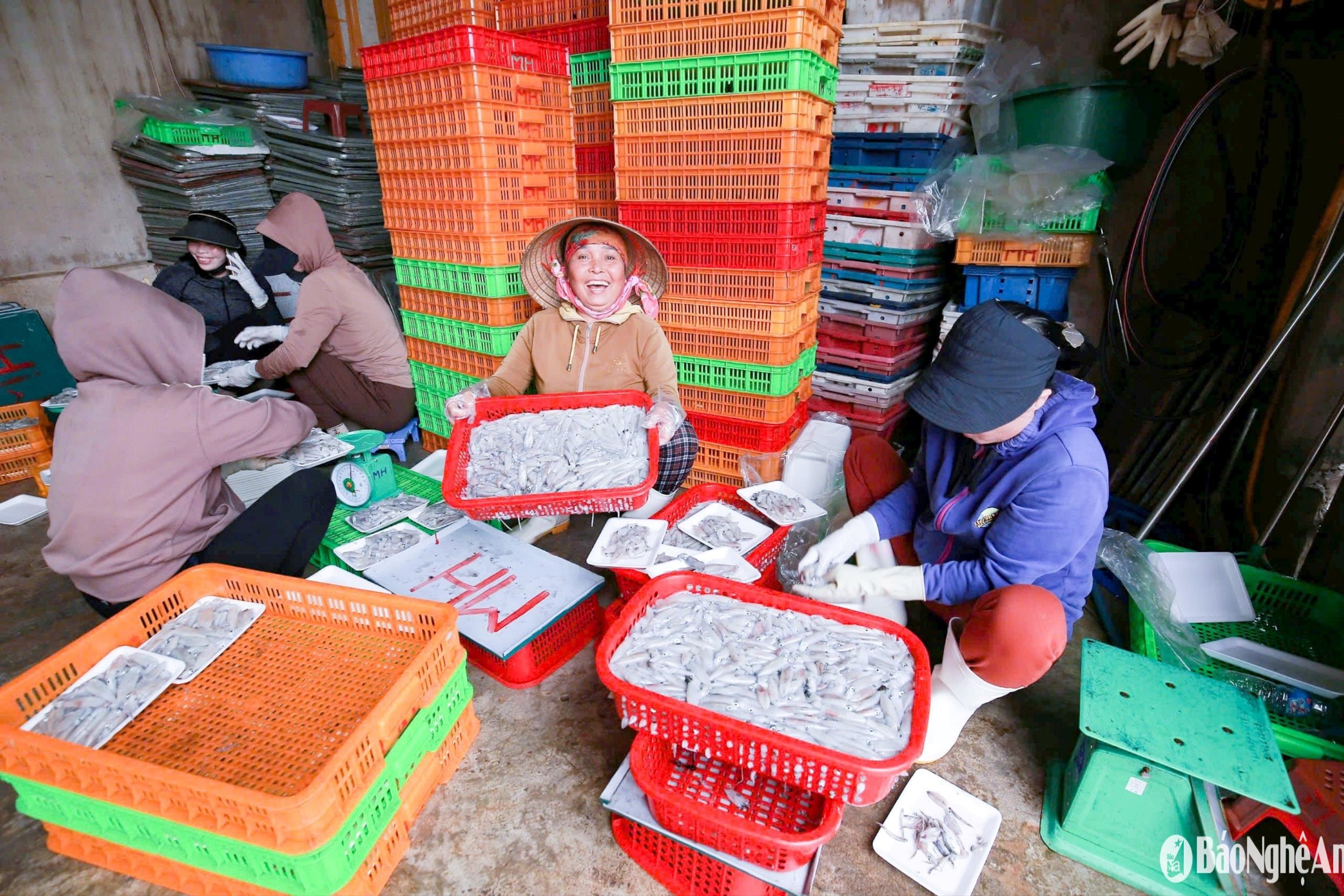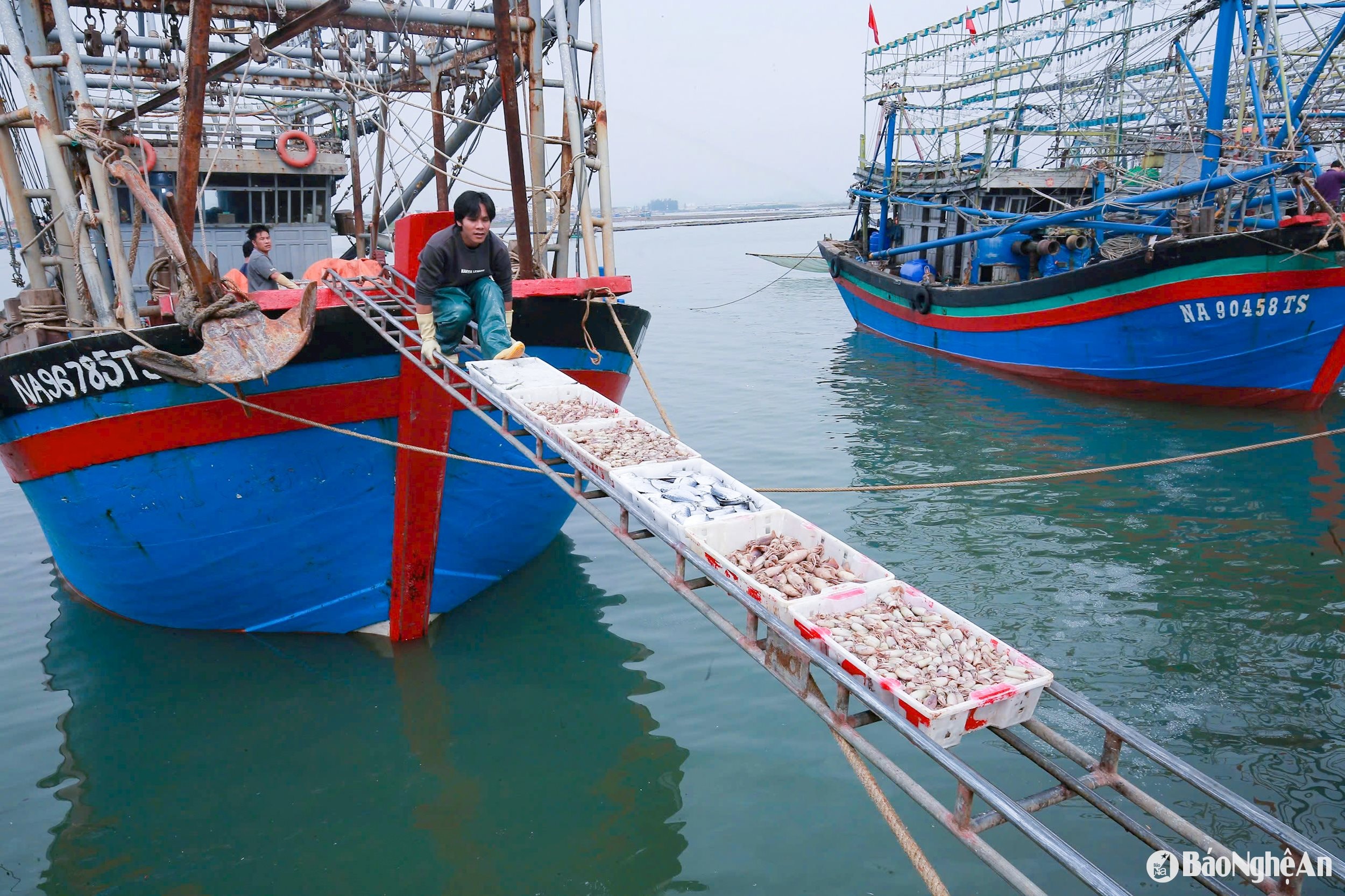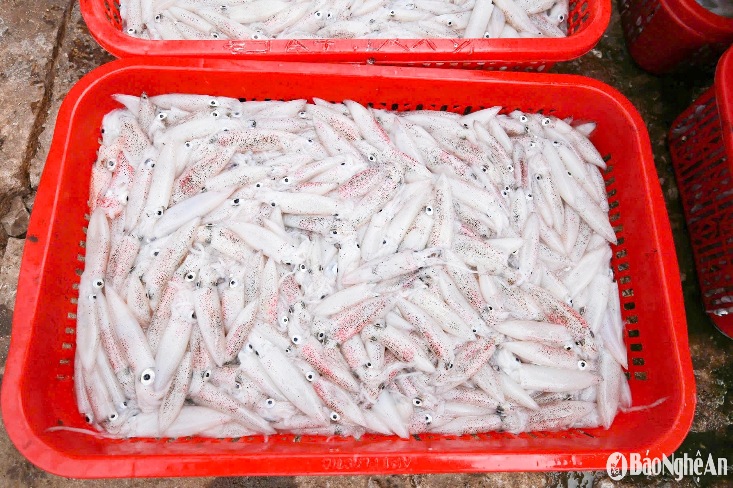 Sau chuyến vươn khơi, hàng loạt tàu cá của ngư dân Nghệ An cập bến với khoang đầy tôm, cá, đặc biệt là mực. Mực đắt hàng, ngư dân bội thu đầu vụ cá Nam năm nay.