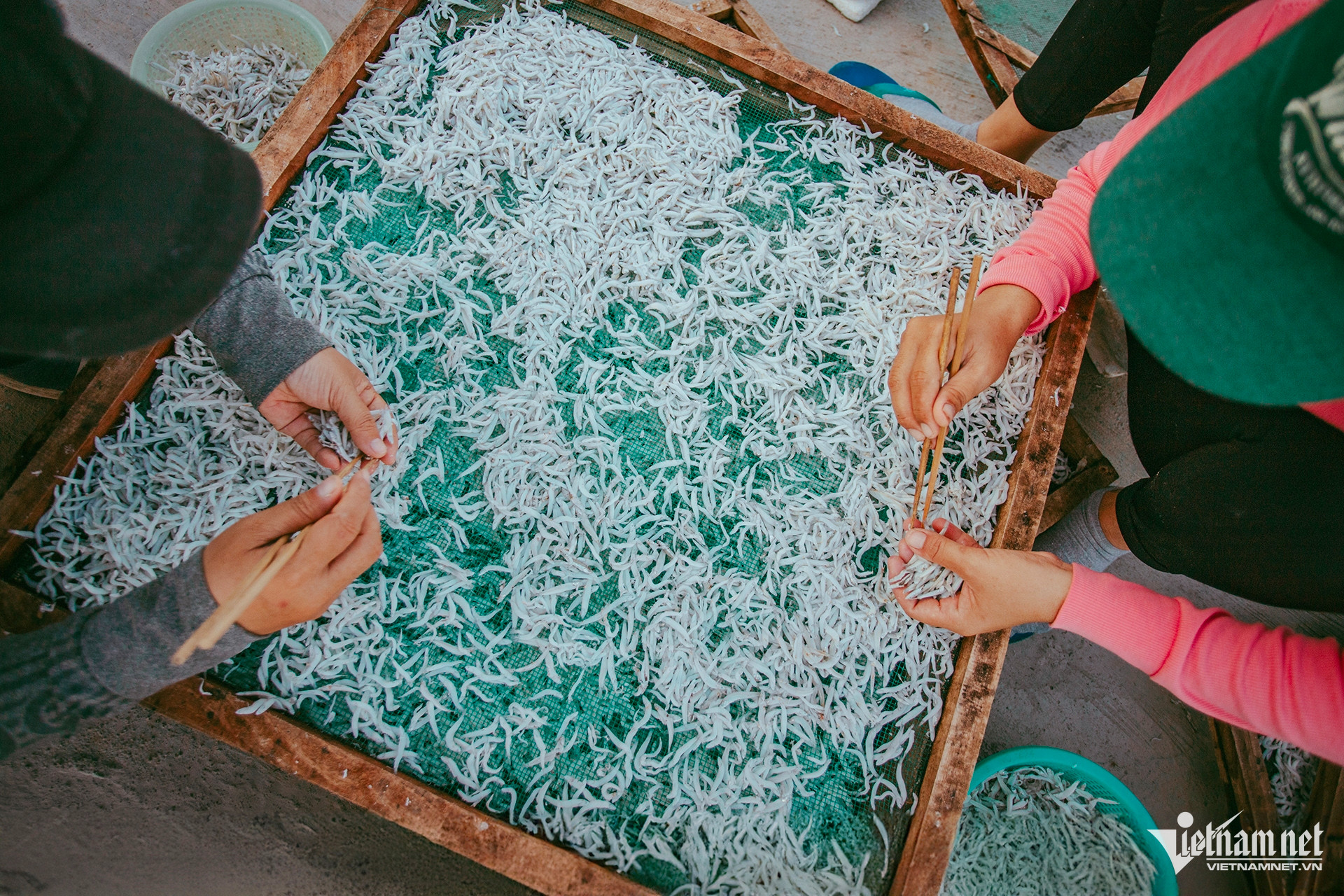 Riêng đối với cá cơm Ngần, người làm phải lựa cá, phân loại theo yêu cầu của thương lái, loại bỏ cá tạp, chọn cá đẹp, nguyên con.