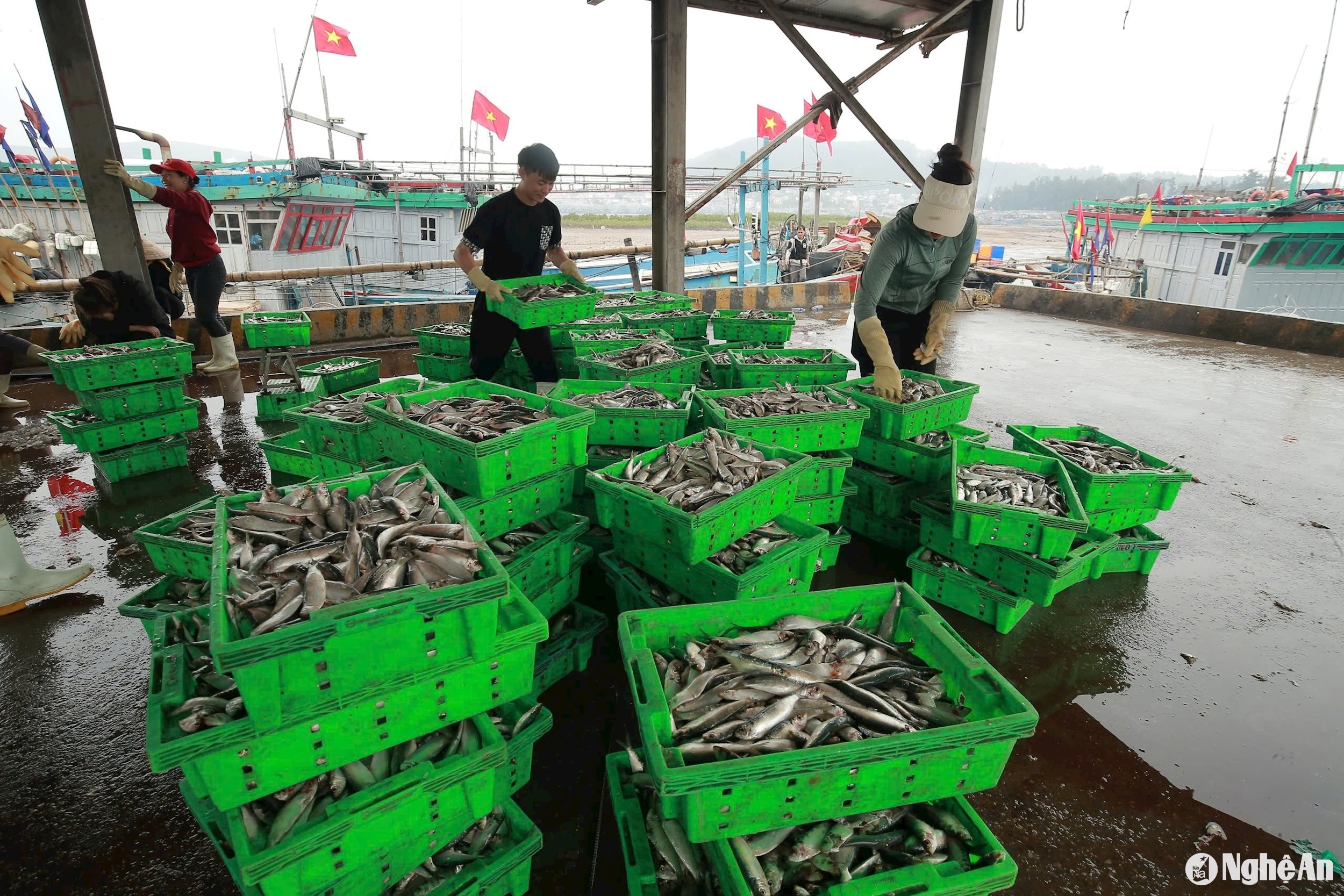 Thời điểm đầu tháng 2, ngư dân liên tục trúng đậm các loại cá trích, cá cơm nên các lò nướng của người dân làng biển Nghệ An đỏ lửa suốt ngày đêm, lao động nướng cá tất bật từ sáng sớm đến đêm khuya.
