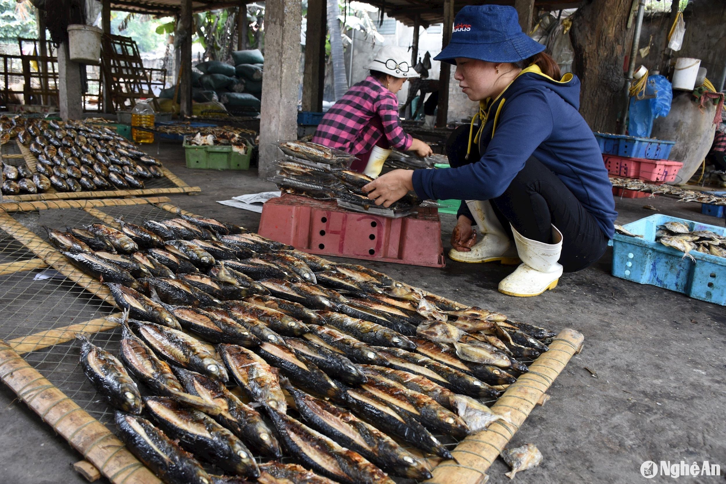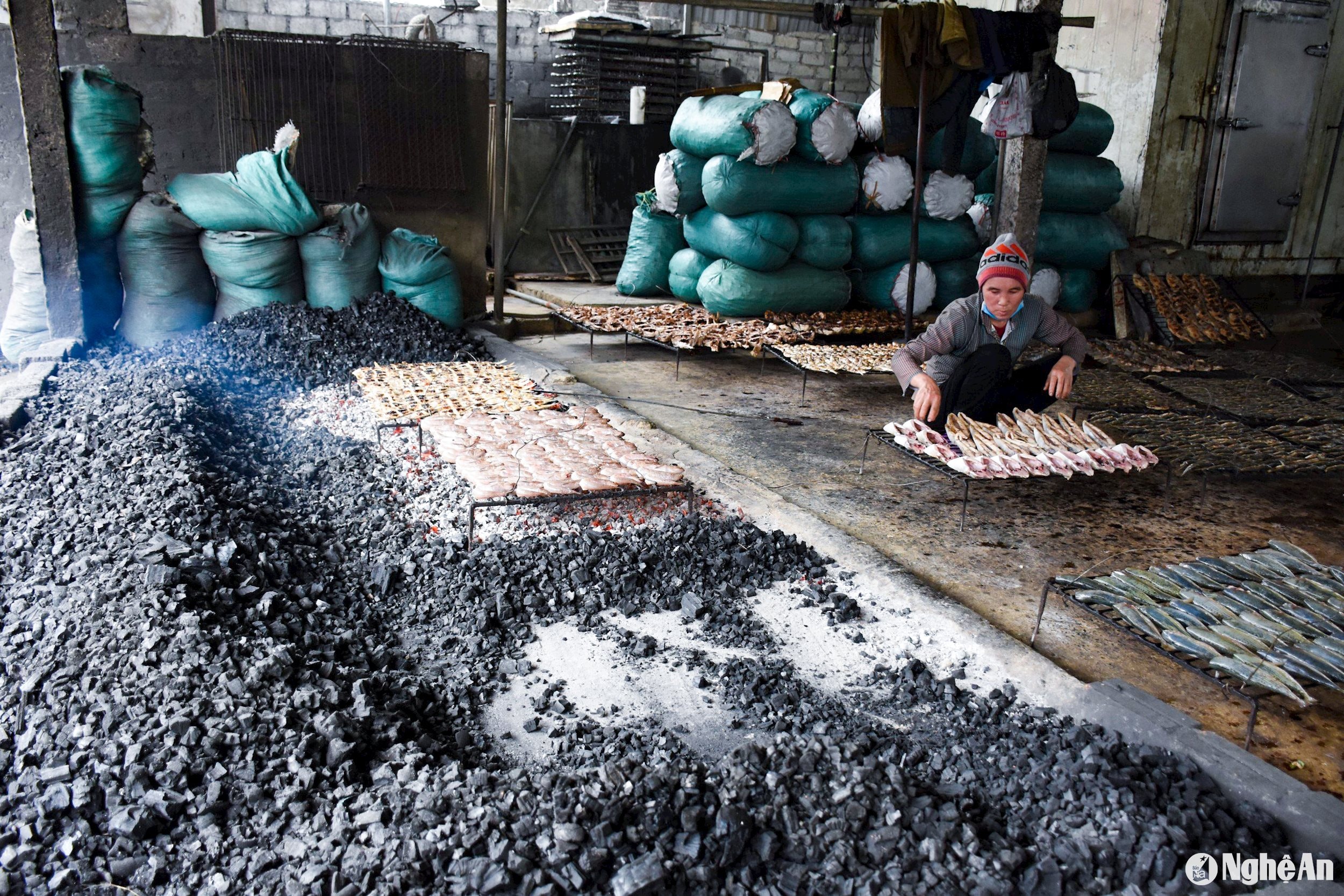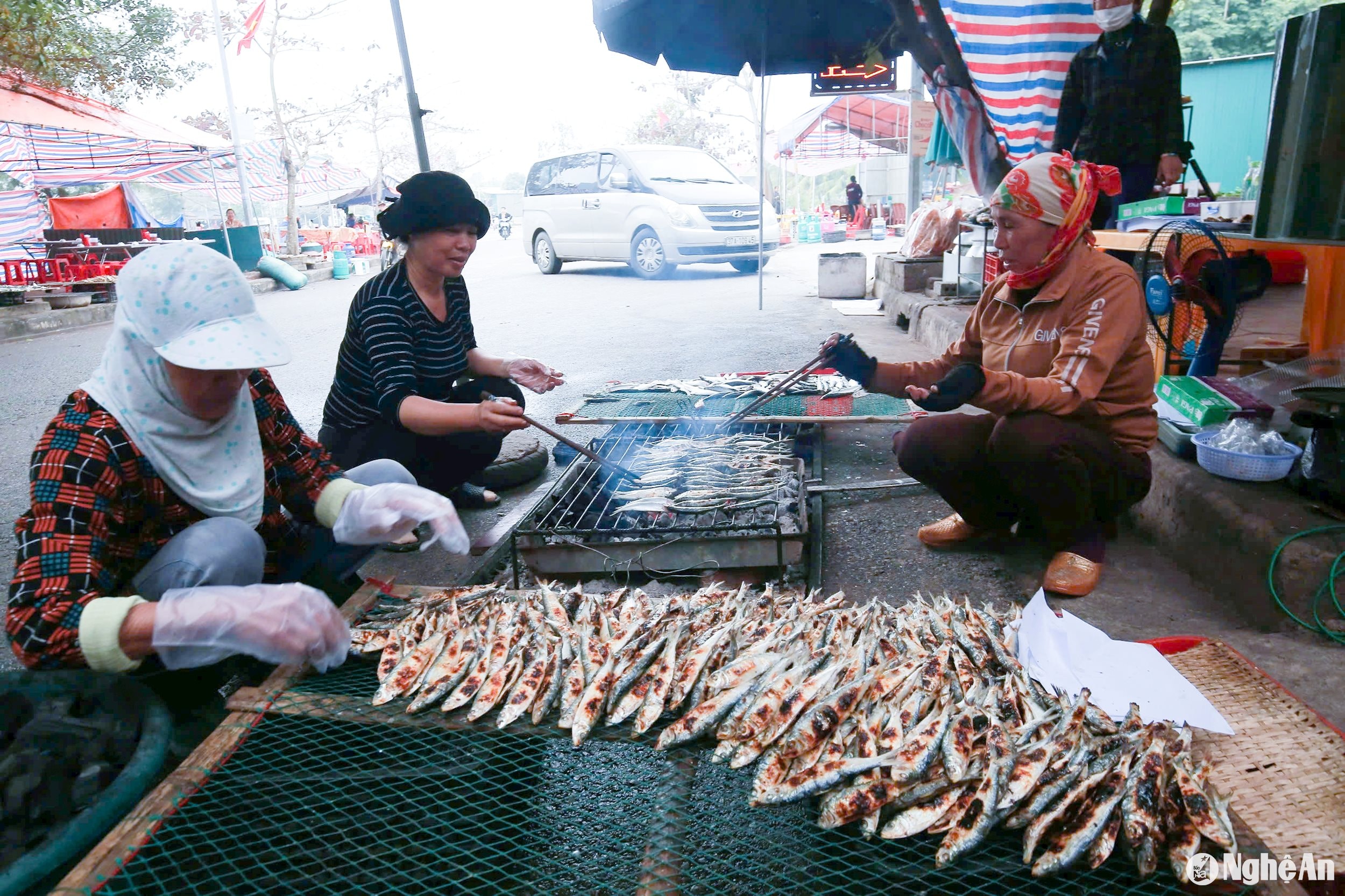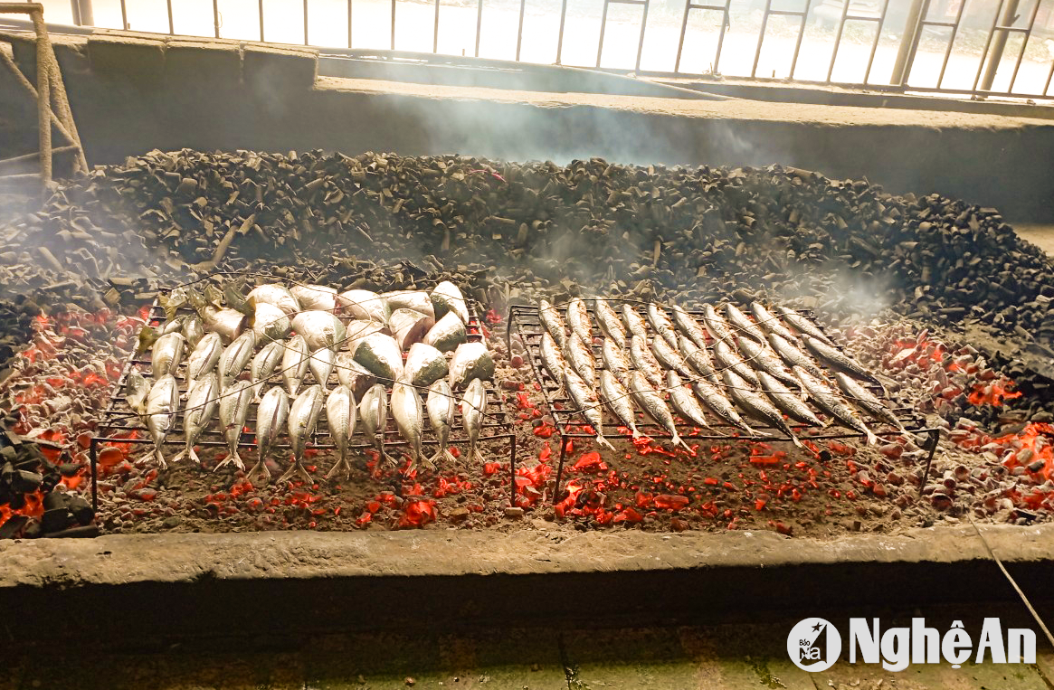 Tháng Giêng là thời điểm đánh bắt chính vụ cá trích. Tàu thuyền đánh bắt gần bờ, cập bến chỉ sau vài tiếng ra khơi, những mẻ cá tươi ngon nhất, con to nhất được thương lái thu mua đưa về đây sơ chế, nướng để cung ứng ra thị trường. Cá được chọn nướng phải là những con cá tươi xanh, vảy đang lấp lánh ánh bạc thì mới có vị ngon, thơm, ngọt… Thời điểm này, các làng biển từ Nghi Thủy, Nghi Hải, Thu Thủy (thành phố Vinh), Diễn Vạn (Diễn Châu), Văn Hải, Phú Nghĩa (Quỳnh Lưu), Quỳnh Phương, Quỳnh Lập (thị xã Hoàng Mai) liên tục đỏ lửa nướng cá trích, cá cơm, cá thu… để phục vụ thị trường sau Tết. Bà Nguyễn Thị Xuân, người có kinh nghiệm nướng cá lâu năm ở phường Quỳnh Phương (thị xã Hoàng Mai) cho biết: “Nướng cá đòi hỏi phải có kinh nghiệm, phải cẩn thận và tỉ mỉ. Khi xếp cá lên vỉ phải căn làm sao cho vừa vặn, để kịp xoay vòng lật trở; khi nướng vừa phải điều chỉnh than ở phía dưới sao cho nhiệt dàn đều. Mỗi loại cá có đặc điểm khác nhau, con dày mình, con mỏng thịt nên thời gian, cách nướng cũng khác nhau”. Để cá chín đều, đẹp và thơm, người nướng phải ngồi túc trực và trở cá liên tục. Vì nếu không đủ nhiệt cá sẽ không chín, nếu quá lửa thì cá sẽ cháy khét. Bà Hồ Thị Thắng, chủ lò nướng tại xã Diễn Vạn (Diễn Châu) cho biết: “Sau Tết, nhu cầu thị trường tăng cao khi người dân mua làm quà biếu, du khách về du Xuân, đi lễ hội đầu năm nên chúng tôi cũng mở hàng sớm hơn, mồng 4 Tết đã đỏ lửa nướng cá. Bình quân mỗi ngày cơ sở chúng tôi nướng khoảng 5 – 7 tạ cá, thuê 4 – 5 công nhân làm việc”. Nghề nướng cá mang lại việc làm và thu nhập ổn định cho nhiều lao động địa phương vùng biển. Nhân công làm cho các cơ sở nướng cá được trả công mỗi ngày từ 250.000 – 400.000 đồng/lao động. Tuy nhiên, lao động làm nghề nướng cá rất vất vả để mưu sinh. “Nhiệt độ ngoài trời mấy ngày này giảm sâu nhưng bên lò than rực đỏ thế này chúng tôi mướt mồ hôi. Tay liên tục cời than, trở cá, dù đi 2 lớp găng tay dày nhưng vẫn nóng rát bởi lửa than, người lấm lem khói bụi”, chị Hoàng Thị Lý, một nhân công nướng cá ở phường Nghi Thủy (TP.Vinh) chia sẻ. Hiện nay, nhằm tăng lợi thế cho nghề cá nướng, nhiều địa phương vùng biển đã lên phương án xây dựng cơ sở hạ tầng nghề cá theo hướng hiện đại và mang tính bền vững nhằm giảm sức lao động, hạn chế tình trạng ô nhiễm môi trường do khói than gây ra. Đồng thời, hướng đến xây dựng sản phẩm cá nướng trở thành sản phẩm OCOP để tăng tính cạnh tranh trên thị trường, tạo việc làm, thu nhập ổn định cho các lao động làm nghề nướng cá…