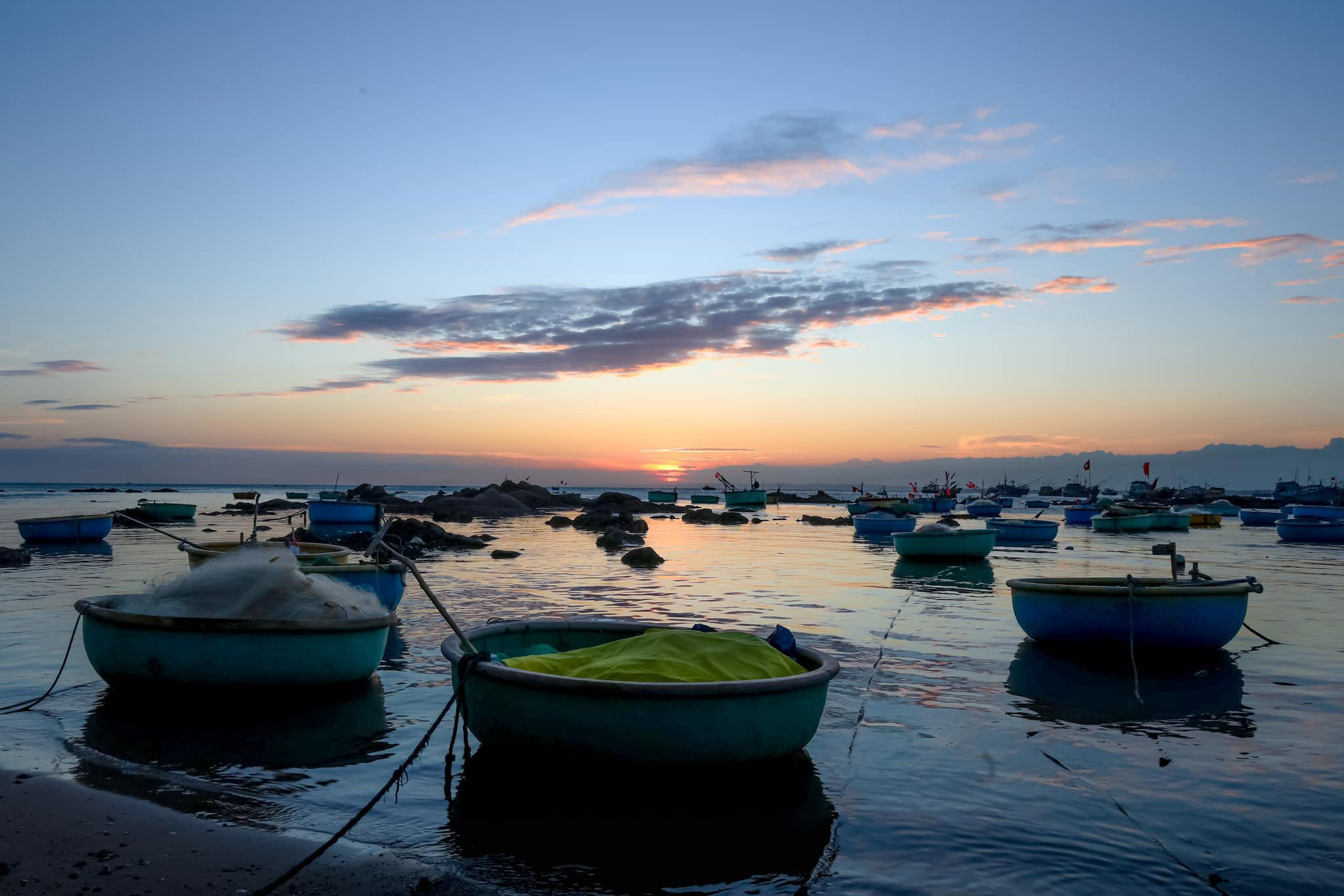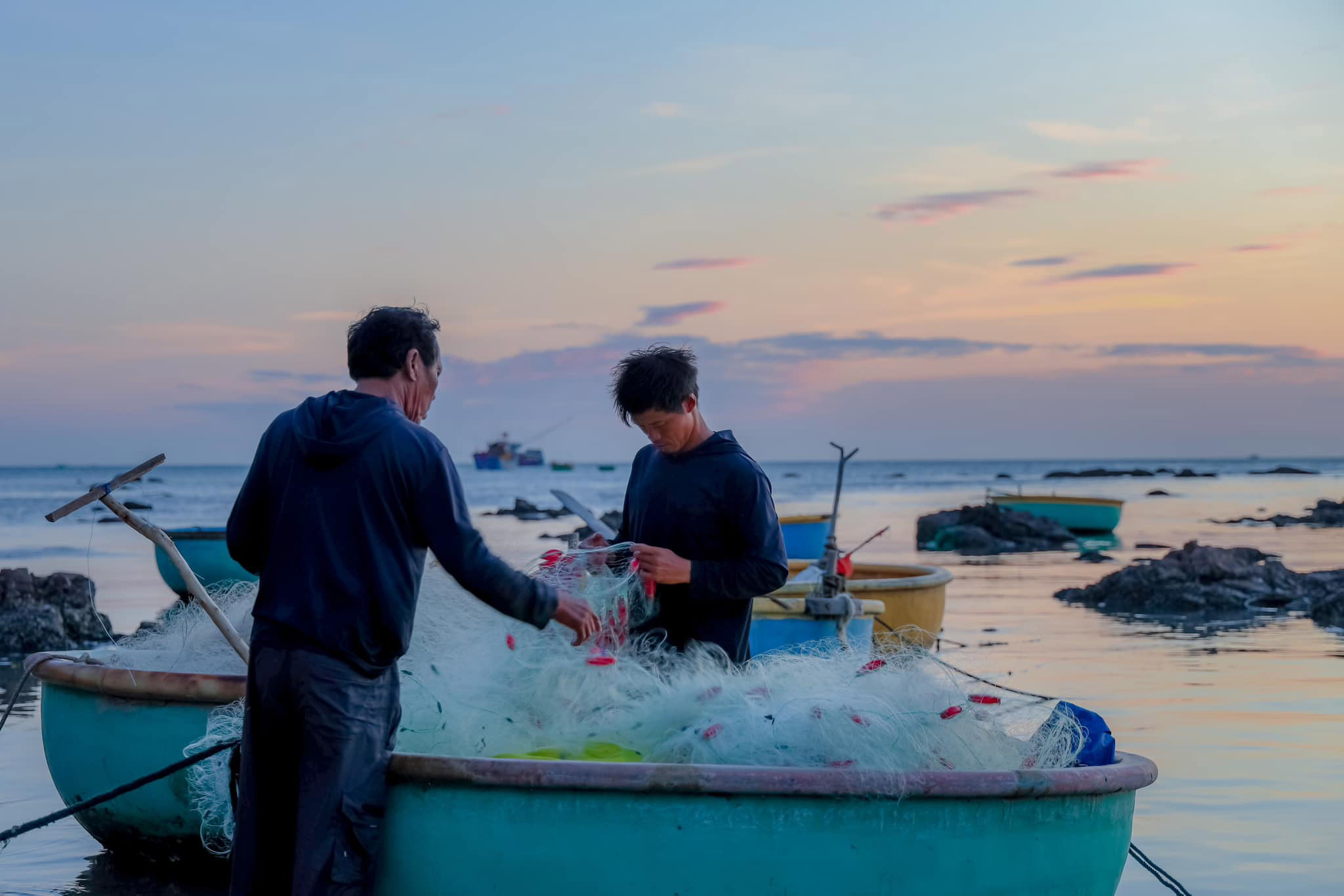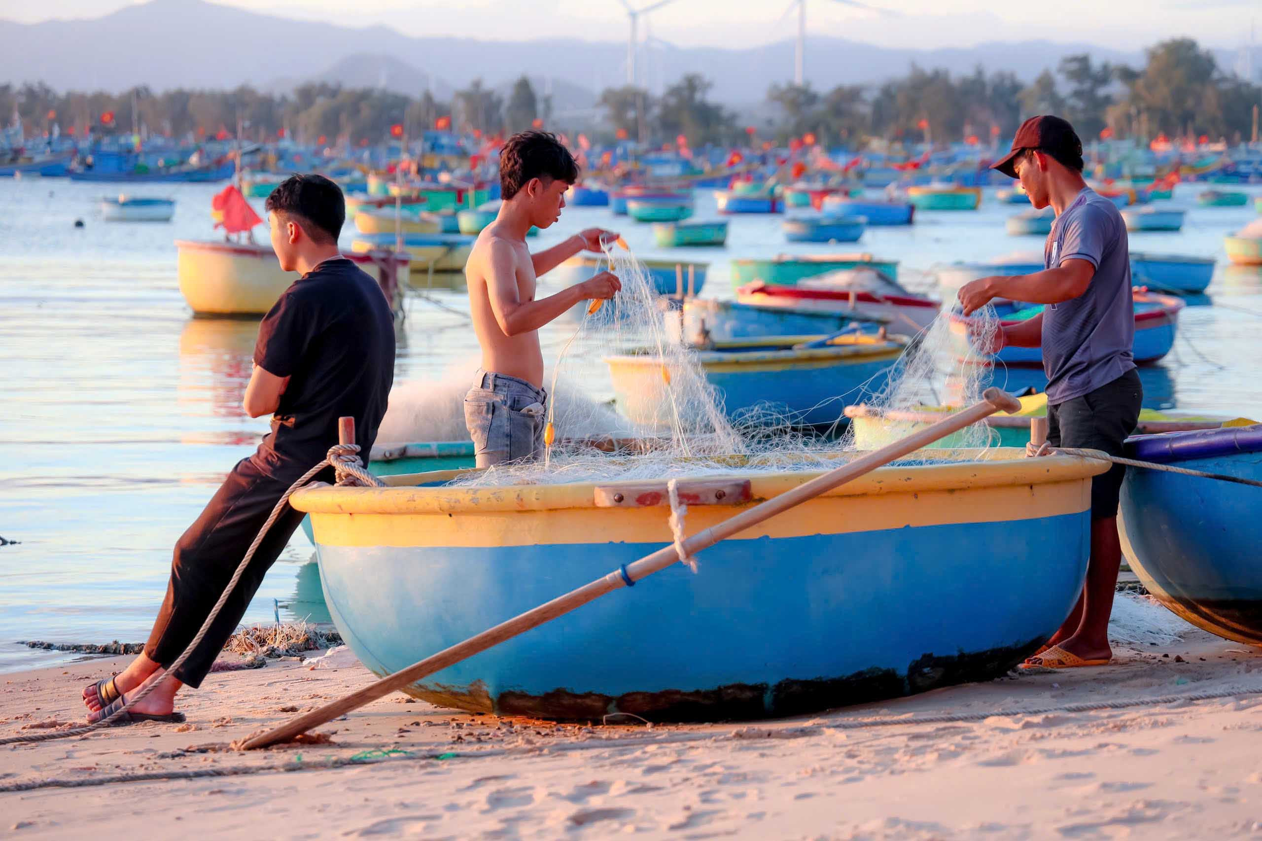 Mũi La Gàn là một dải đất ven biển dài hơn 2.000m, với những mũi đá nhô ra biển tạo thành hình vòng cung. Khu vực này không chỉ là nơi ở của cư dân địa phương mà còn là điểm tránh bão của tàu thuyền trong vùng. Ảnh: Lữ Duy TườngĐộc giả Lữ Duy Tường, sau chuyến ghé thăm làng chài La Gàn, chia sẻ khi hoàng hôn dần buông, hàng trăm con thuyền nhiều màu sắc neo đậu trên mặt biển, tạo nên khung cảnh sinh hoạt đặc trưng của làng chài. Ảnh: Lữ Duy TườngTheo anh Tường, thời tiết tại La Gàn những ngày này khá dễ chịu, không quá nắng nóng; buổi tối se lạnh, thích hợp để du khách dạo chơi, ngắm cảnh. Ảnh: Lữ Duy Tường“Khi trời tối, làng chài lên đèn, phản chiếu trên mặt biển, tạo nên bức tranh sống động”, anh Tường nói. Ảnh: Lữ Duy TườngTrên mặt biển, những chiếc ghe và thuyền thúng neo đậu sau chuyến ra khơi, tạo nên nhịp sống quen thuộc nơi làng chài. Ảnh: Lữ Duy TườngNgư dân gỡ lưới, chuẩn bị cho chuyến đánh bắt tiếp theo. Ảnh: Lữ Duy TườngĐến mũi La Gàn, du khách có thể kết hợp ghé thăm chùa Cổ Thạch, bãi đá “bảy màu” Cổ Thạch hay lăng Ông Nam Hải… ở gần đó. Ảnh: Lữ Duy TườngNgoài ra, du khách còn có dịp thưởng thức hải sản tươi ngon được chế biến ngay tại chỗ bởi ngư dân địa phương. Khu vực này cũng có nhiều nhà hàng, khách sạn, đáp ứng nhu cầu của du khách. Ảnh: Lữ Duy Tường