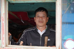 Tàu của anh chủ yếu khai thác cá bạc má, cá hố, cá ngừ ở khu vực Vịnh Bắc Bộ. Mỗi chuyến biển kéo dài khoảng 20 ngày với 15-17 lao động, tiêu thụ từ 6.000-7.000 lít dầu tùy đợt.