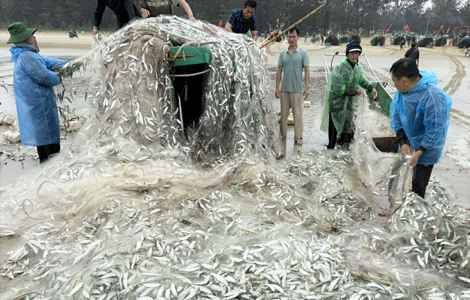 Trước đó, vào sáng sớm 9/3, ông Anh cùng một số ngư dân khác vươn khơi đánh bắt cá ở vùng lộng, cách đất liền khoảng 9 hải lý. Quá trình khai thác, nhóm ngư dân phát hiện luồng cá trích nổi trên mặt biển nên phối hợp thả 900m2 lưới để vây bắt. Trưa cùng ngày, ngư dân thu lưới thì phát hiện số lượng cá mắc lưới dày đặc.
