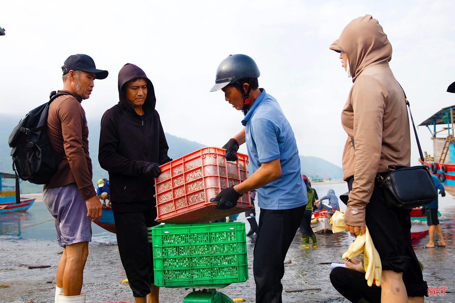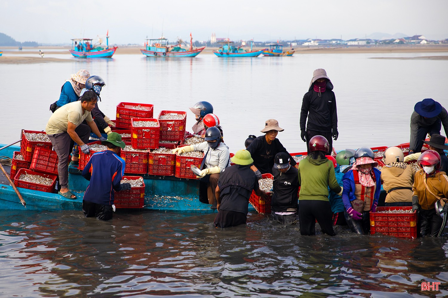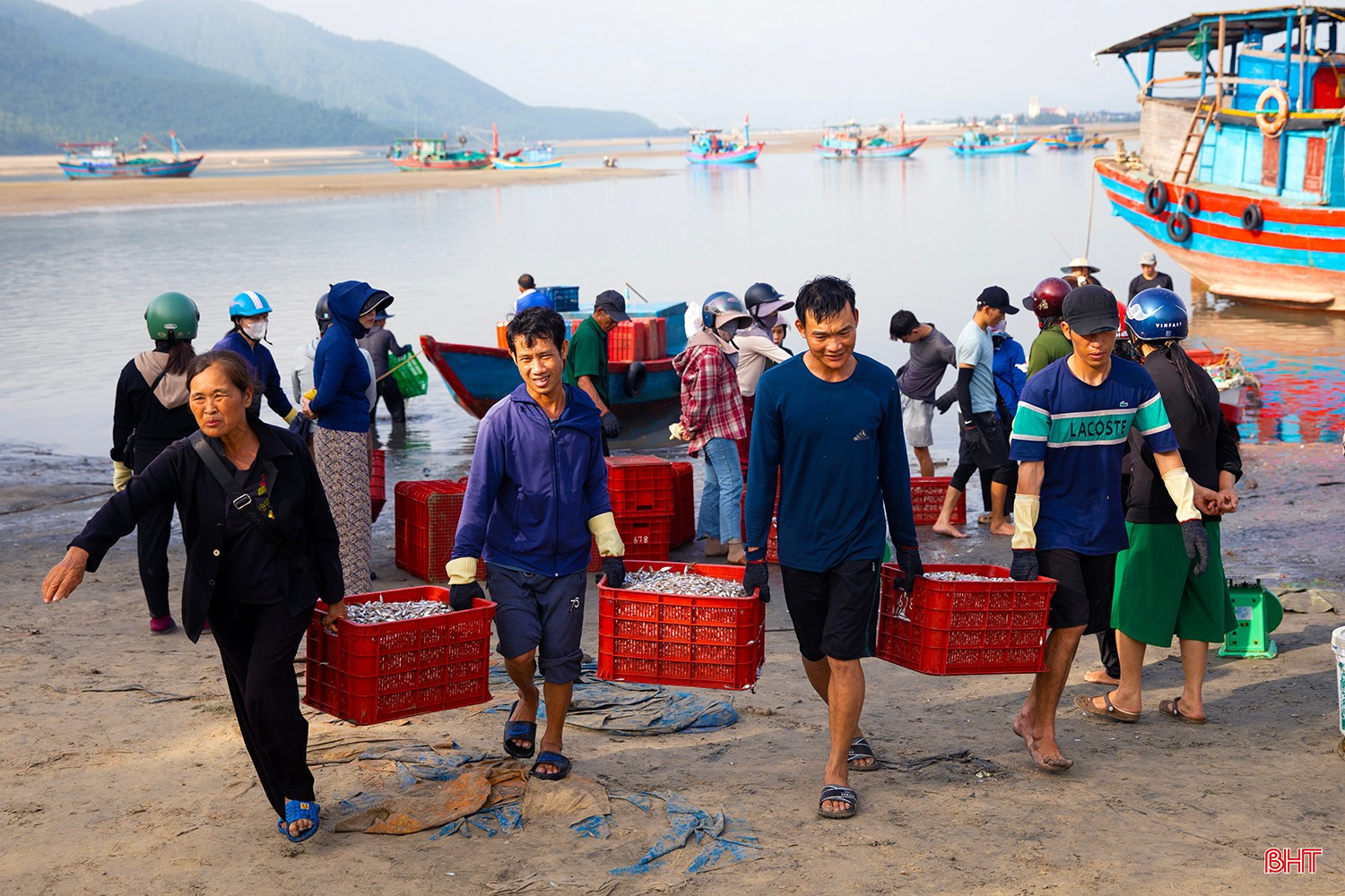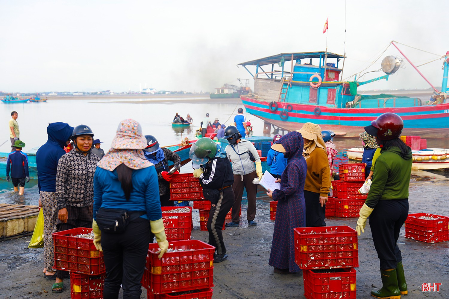 Từ sáng sớm, không khí trên bến thuyền Kỳ Ninh hết sức nhộn nhịp. Hàng chục chiếc thuyền của ngư dân làng biển Kỳ Ninh cập bến đầy ắp khoang với hàng tấn cá giò.Cá giò (người địa phương còn gọi là cá tho) là loại cá có kích thước nhỏ, chủ yếu sử dụng để chế biến nước mắm truyền thống. Theo nhiều ngư dân, nước mắm cá giò cho chất lượng ngon không thua kém nước mắm cá cơm.Sau một ngày ra khơi, tàu của anh Phan Văn Tuấn (TDP Tam Hải 2, phường Kỳ Ninh) đã thắng lớn với hơn 5 tấn cá giò. Anh Tuấn cho biết: “Chúng tôi ra khơi cách bờ khoảng 6 hải lý thì gặp được mẻ cá giò lớn. Cá được thương lái thu mua giá ổn định từ 10.000 – 12.000 đồng/kg, sau khi trừ chi phí cũng cho thu nhập hơn 20 triệu đồng…”.Tàu của anh Nguyễn Văn Hoàn (TDP Tam Hải 2, phường Kỳ Ninh) cũng vừa cập bến với hơn 4 tấn cá giò. Anh Hoàn phấn khởi chia sẻ: “Cả tuần nay, ngày nào tàu chúng tôi cũng ra khơi, ngày ít thì được 2-3 tấn, ngày nhiều thì 5-7 tấn. Sau đợt này, tôi cùng anh em bạn thuyền sẽ có nguồn thu nhập tốt để trang trải cuộc sống, yên tâm vươn khơi, bám biển trong thời gian tới…”.Các sọt cá giò tươi rói được khẩn trương đưa lên bờ để nhập cho các thương lái.