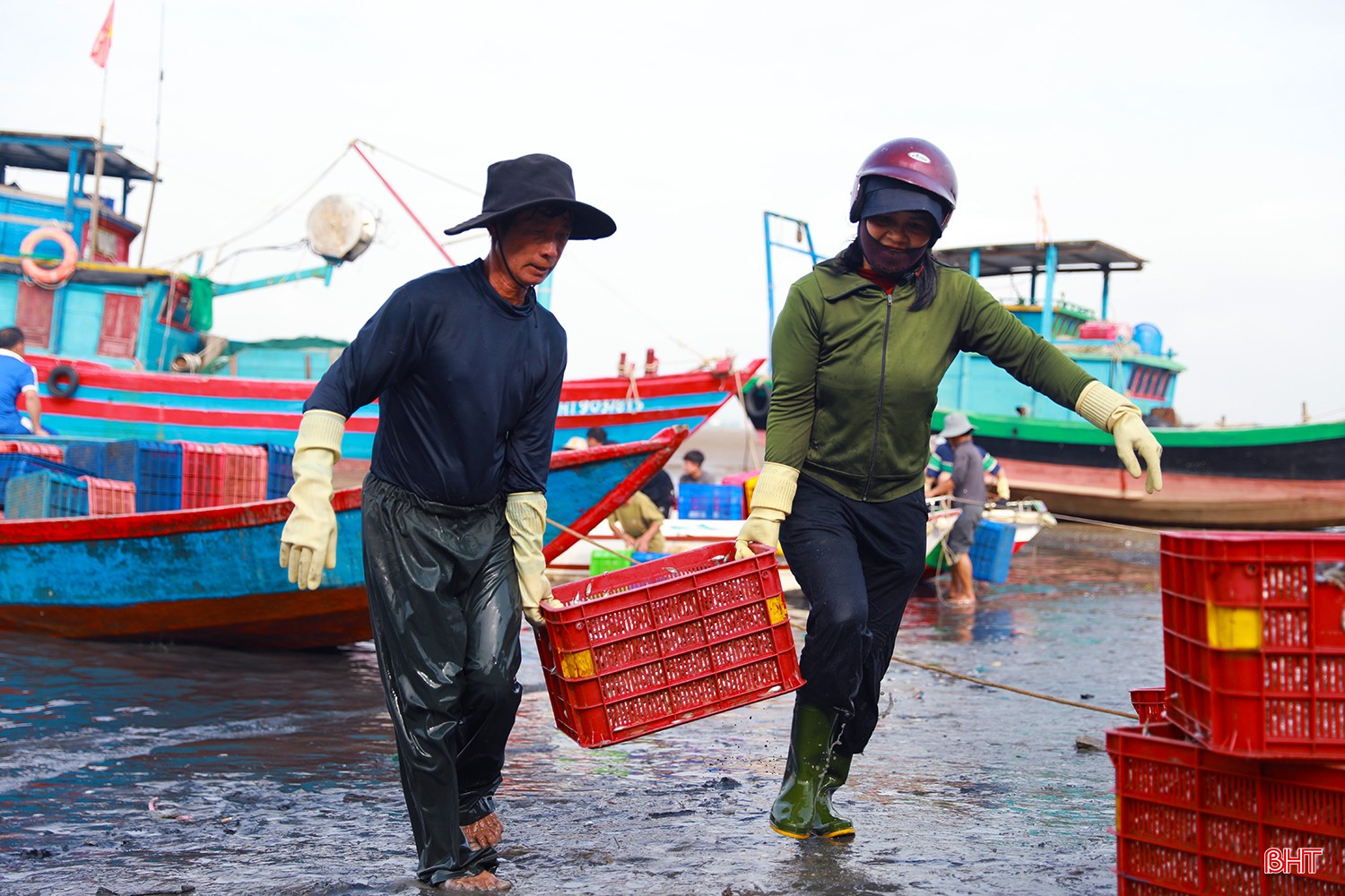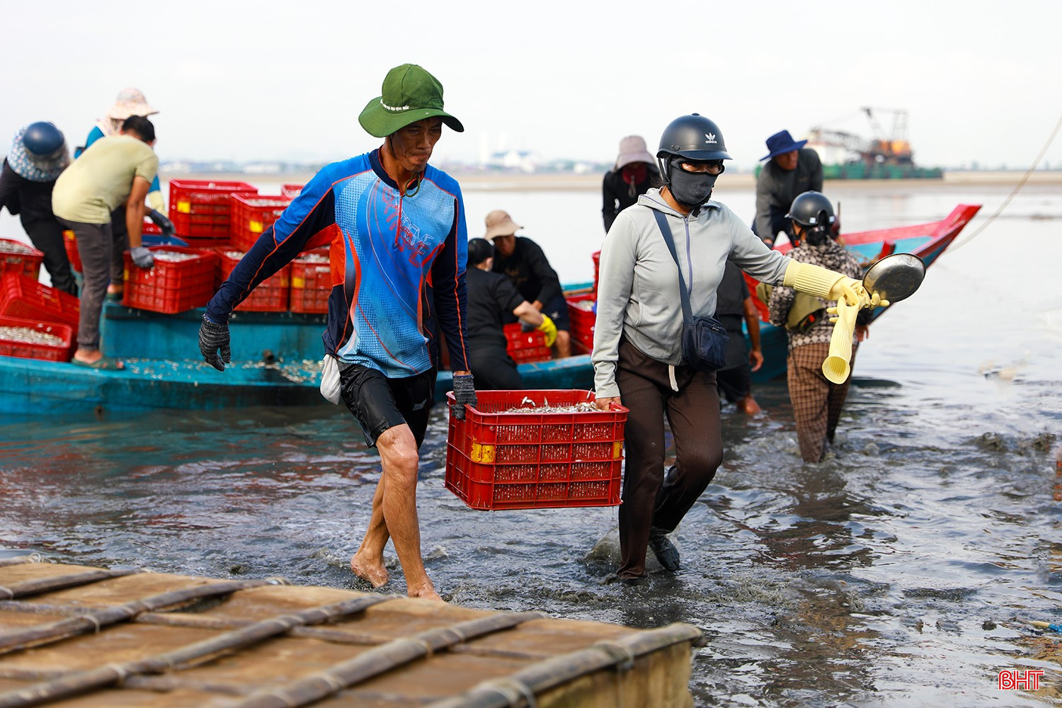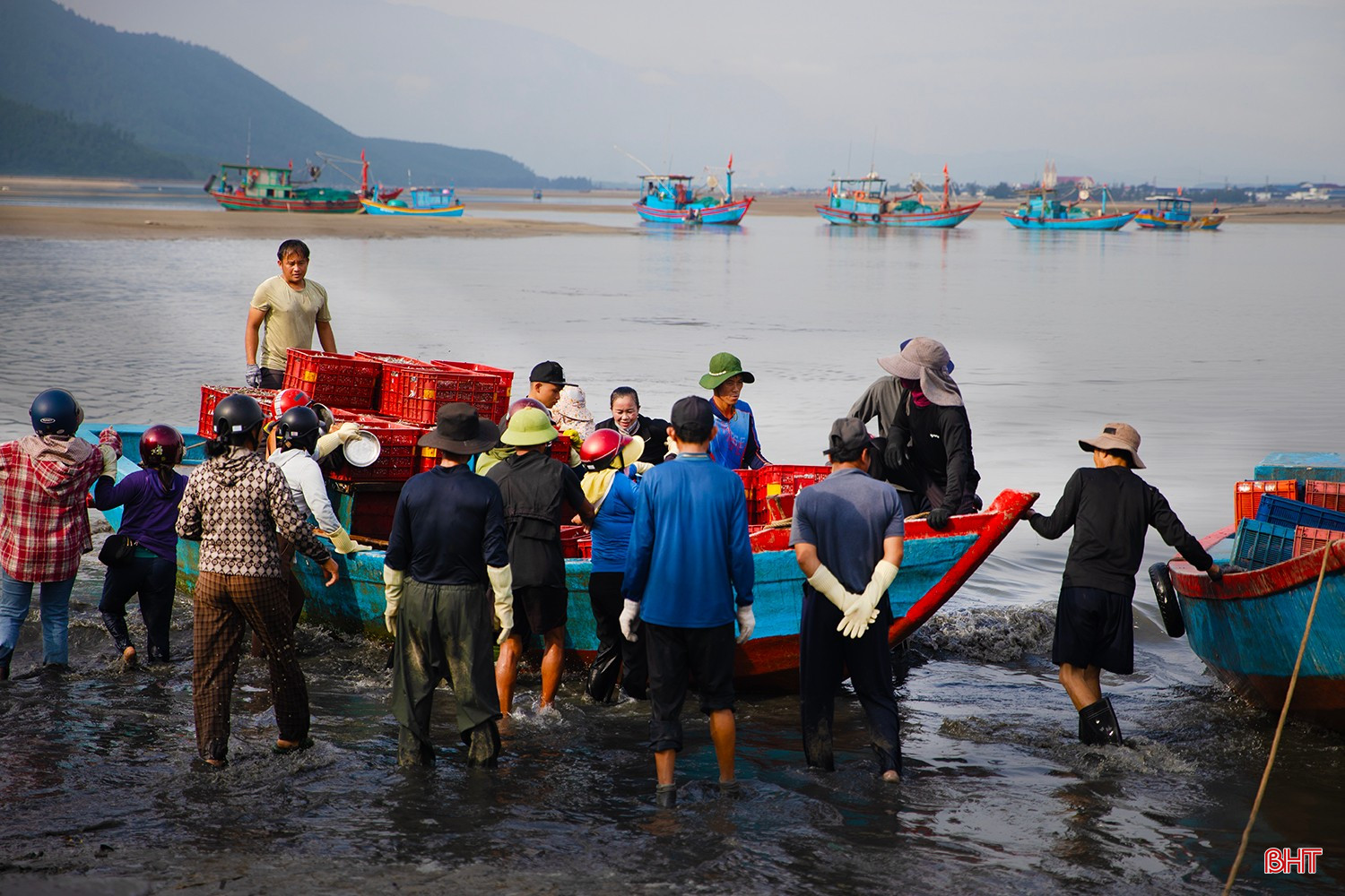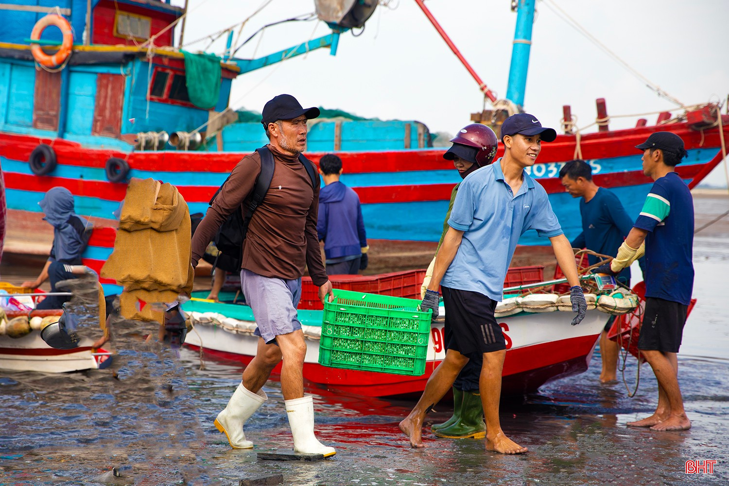 Từ sáng sớm, không khí trên bến thuyền Kỳ Ninh hết sức nhộn nhịp. Hàng chục chiếc thuyền của ngư dân làng biển Kỳ Ninh cập bến đầy ắp khoang với hàng tấn cá giò.Cá giò (người địa phương còn gọi là cá tho) là loại cá có kích thước nhỏ, chủ yếu sử dụng để chế biến nước mắm truyền thống. Theo nhiều ngư dân, nước mắm cá giò cho chất lượng ngon không thua kém nước mắm cá cơm.Sau một ngày ra khơi, tàu của anh Phan Văn Tuấn (TDP Tam Hải 2, phường Kỳ Ninh) đã thắng lớn với hơn 5 tấn cá giò. Anh Tuấn cho biết: “Chúng tôi ra khơi cách bờ khoảng 6 hải lý thì gặp được mẻ cá giò lớn. Cá được thương lái thu mua giá ổn định từ 10.000 – 12.000 đồng/kg, sau khi trừ chi phí cũng cho thu nhập hơn 20 triệu đồng…”.Tàu của anh Nguyễn Văn Hoàn (TDP Tam Hải 2, phường Kỳ Ninh) cũng vừa cập bến với hơn 4 tấn cá giò. Anh Hoàn phấn khởi chia sẻ: “Cả tuần nay, ngày nào tàu chúng tôi cũng ra khơi, ngày ít thì được 2-3 tấn, ngày nhiều thì 5-7 tấn. Sau đợt này, tôi cùng anh em bạn thuyền sẽ có nguồn thu nhập tốt để trang trải cuộc sống, yên tâm vươn khơi, bám biển trong thời gian tới…”.Các sọt cá giò tươi rói được khẩn trương đưa lên bờ để nhập cho các thương lái.