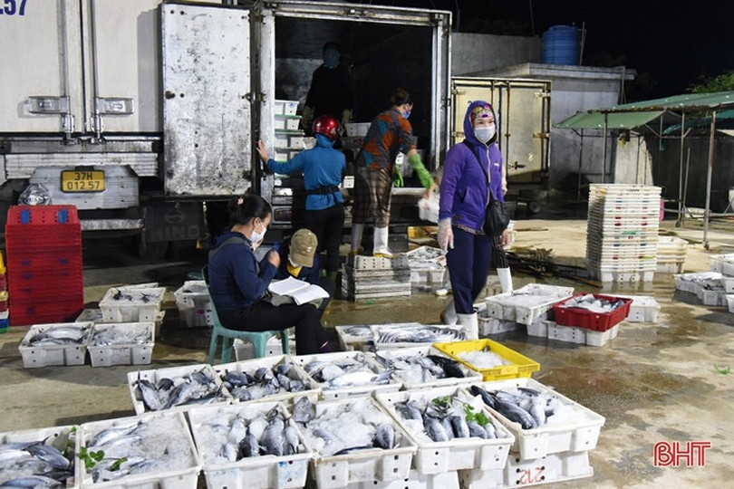 Hòa cùng không khí sản xuất của các cơ sở chế biến ở Cụm công nghiệp Thạch Kim, từ 4 giờ đến 7 giờ sáng mỗi ngày, Bến cá Thạch Kim đều có gần 1.000 tiểu thương ở khắp nơi đổ về bằng nhiều loại phương tiện để mua, bán các loại hải sản. Bình quân mỗi ngày ở bến cá đầu mối này mua bán sỉ khoảng 15 – 20 tấn hải sản, những dịp cao điểm như tết lên đến 30 – 40 tấn (gồm cả những loại đánh bắt trên địa bàn lẫn trung chuyển từ các tỉnh miền Nam ra) để mang đi tiêu thụ khắp các thị trường lẻ trong và ngoài tỉnh.