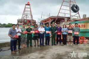 Nhân dịp này, Hải đoàn 42 đã trao 80 suất quà (trị giá 1 triệu đồng mỗi suất) tặng các hộ ngư dân và gia đình có hoàn cảnh khó khăn; tặng 300 cờ Tổ quốc, 30 túi thuốc y tế, 90 áo phao, 60 bộ áo mưa cho tàu cá đang neo đậu tại cảng cá Rạch Gốc.