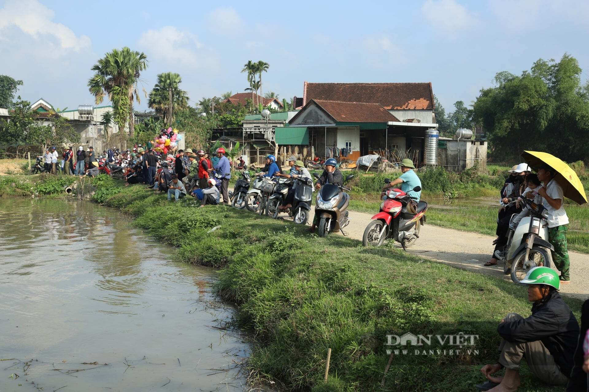 Nhiều người ngồi chờ trên bờ trước giờ khai hội. “Nơm thủ” từ khắp nơi đổ về mong sẽ “hái lộc” lớn để lấy may đầu năm. Ảnh: Rạng Đông