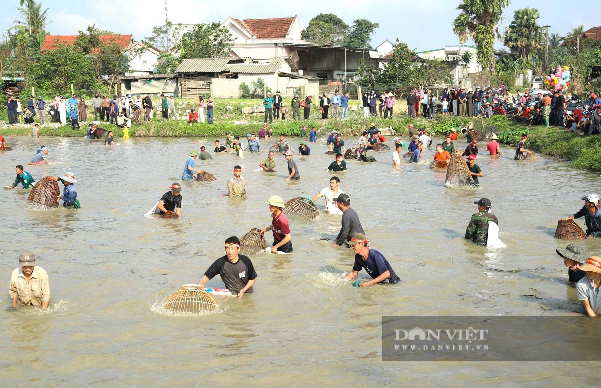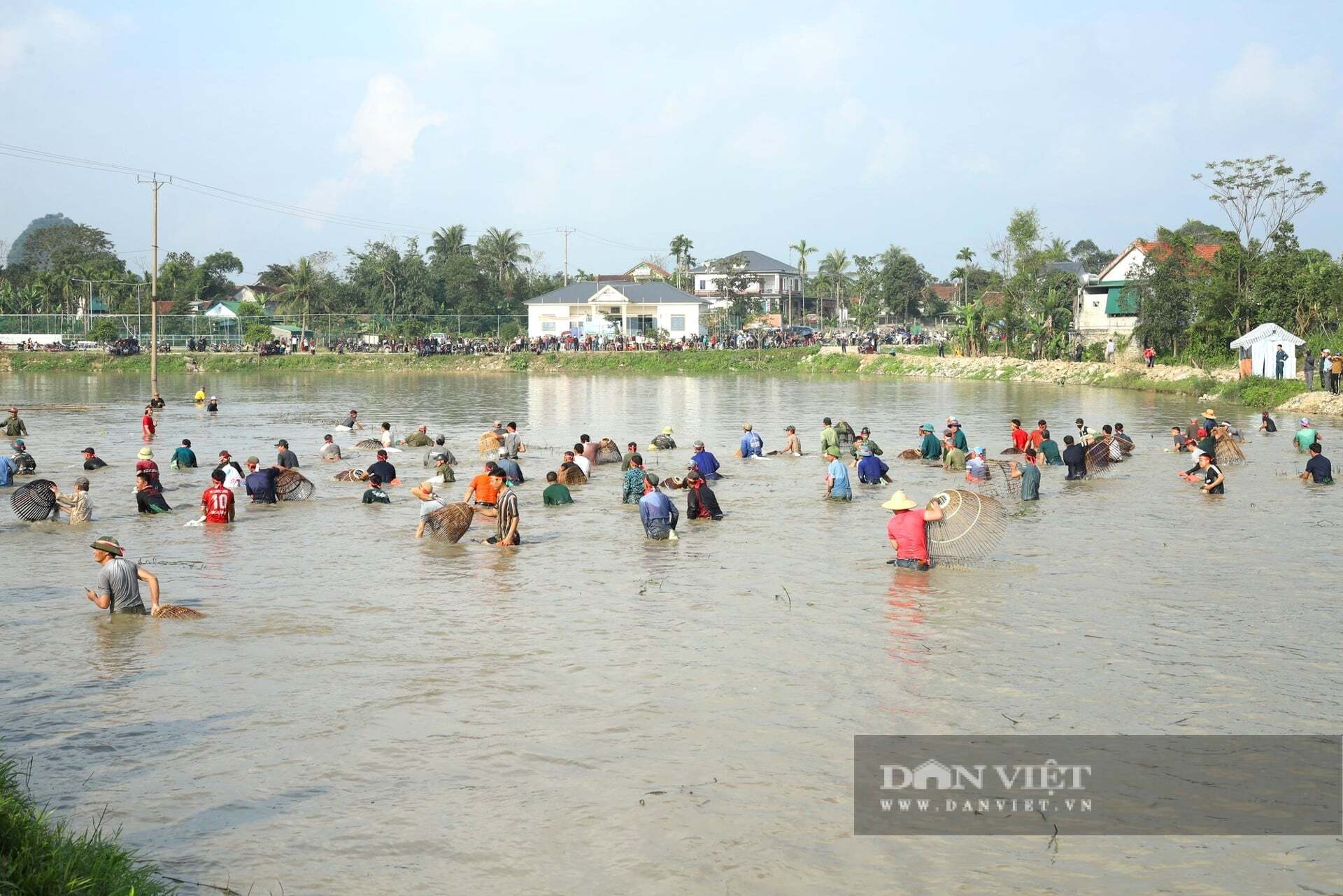 Theo đại diện ban tổ chức lễ hội, khu vực tổ chức lễ hội là ao và ruộng lúa của người dân có diện tích rộng khoảng 1,7ha. Mỗi người tham gia nơm cá sẽ mua vé với giá 200.000 đồng. Lễ hội được tổ chức nhằm tạo ra một sân chơi ý nghĩa cho người dân trên địa bàn ngày đầu năm mới. Ảnh: Rạng Đông