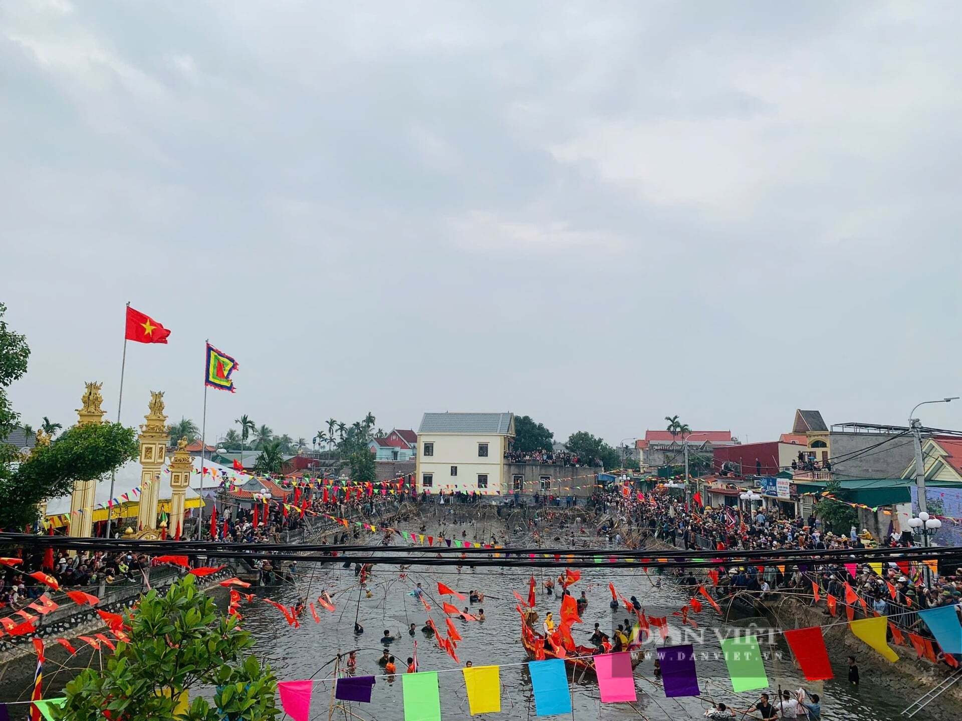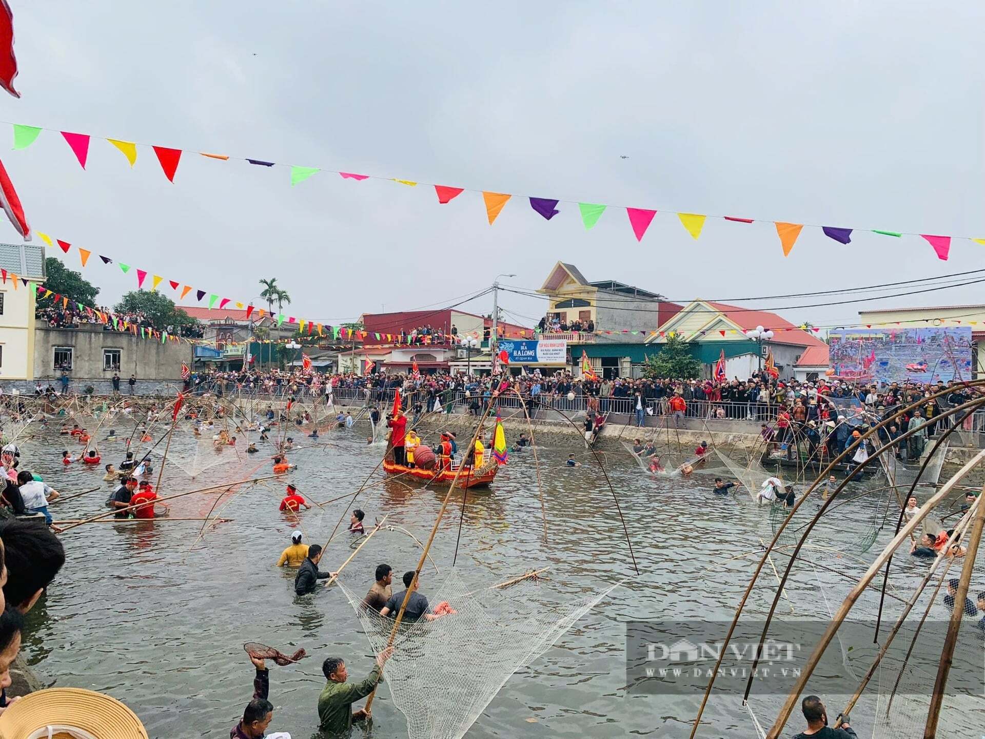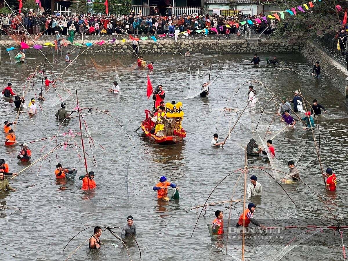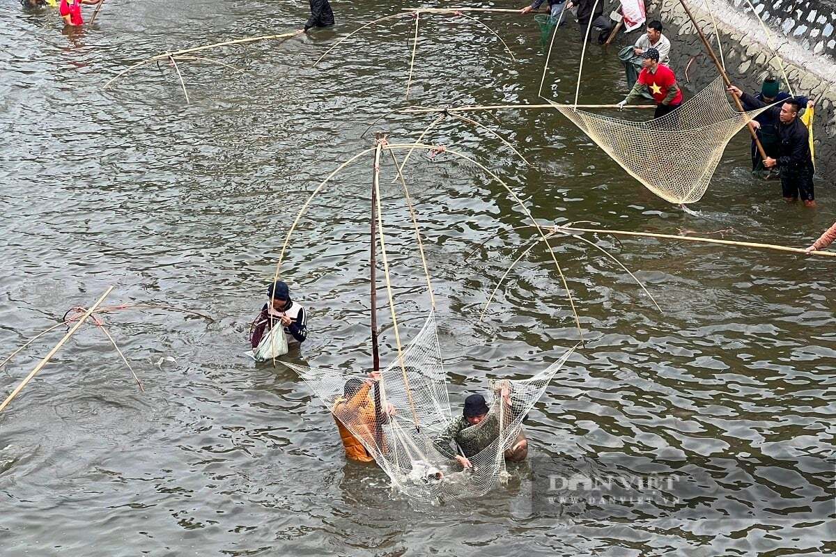 Dưới cái rét căm căm, hàng trăm vó thủ tham gia hội “đùa hồ bắt cá” ở Lễ hội truyền thống đình Cung Chúc, xã Vĩnh Thịnh (Hải Phòng). Ảnh VT.