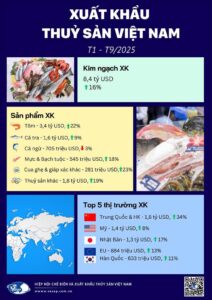 Theo thống kê mới nhất của Hải quan Việt Nam, xuất khẩu thủy sản Việt Nam đạt 8,4 tỷ USD trong 9 tháng đầu năm 2025, tăng 16% so với cùng kỳ năm 2024. Nhiều nhóm sản phẩm ghi nhận mức tăng trưởng mạnh như tôm (+22%), mực và bạch tuộc (+18%), cua ghẹ và giáp xác khác (+23%).