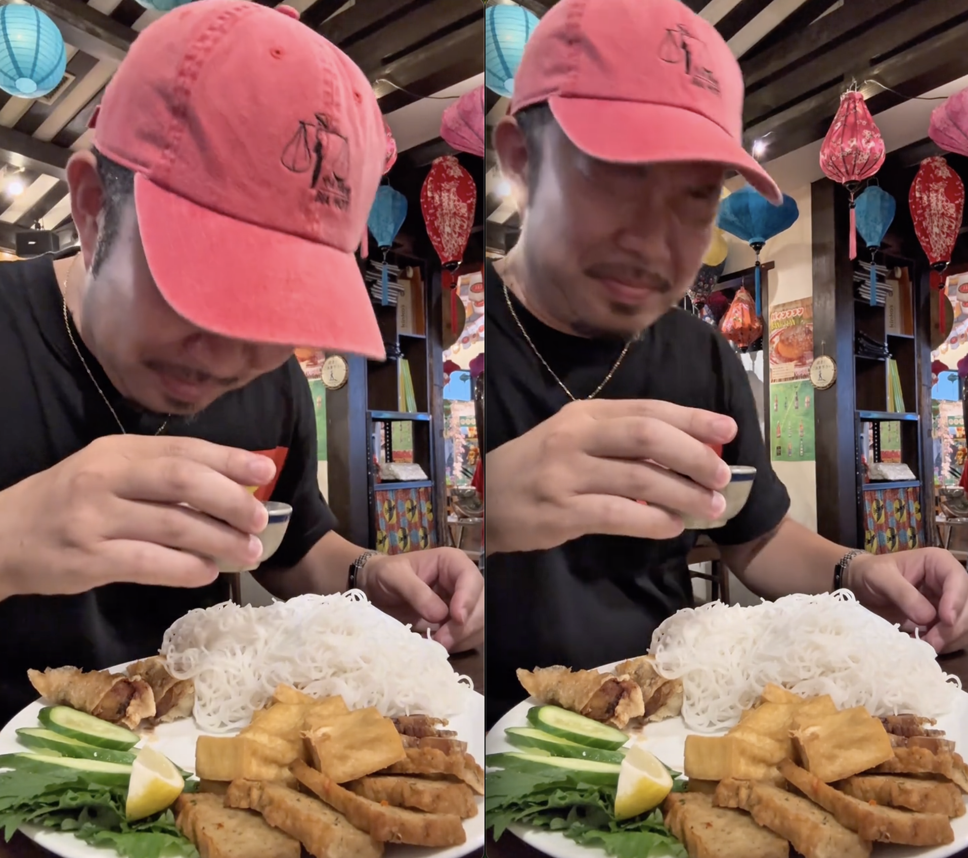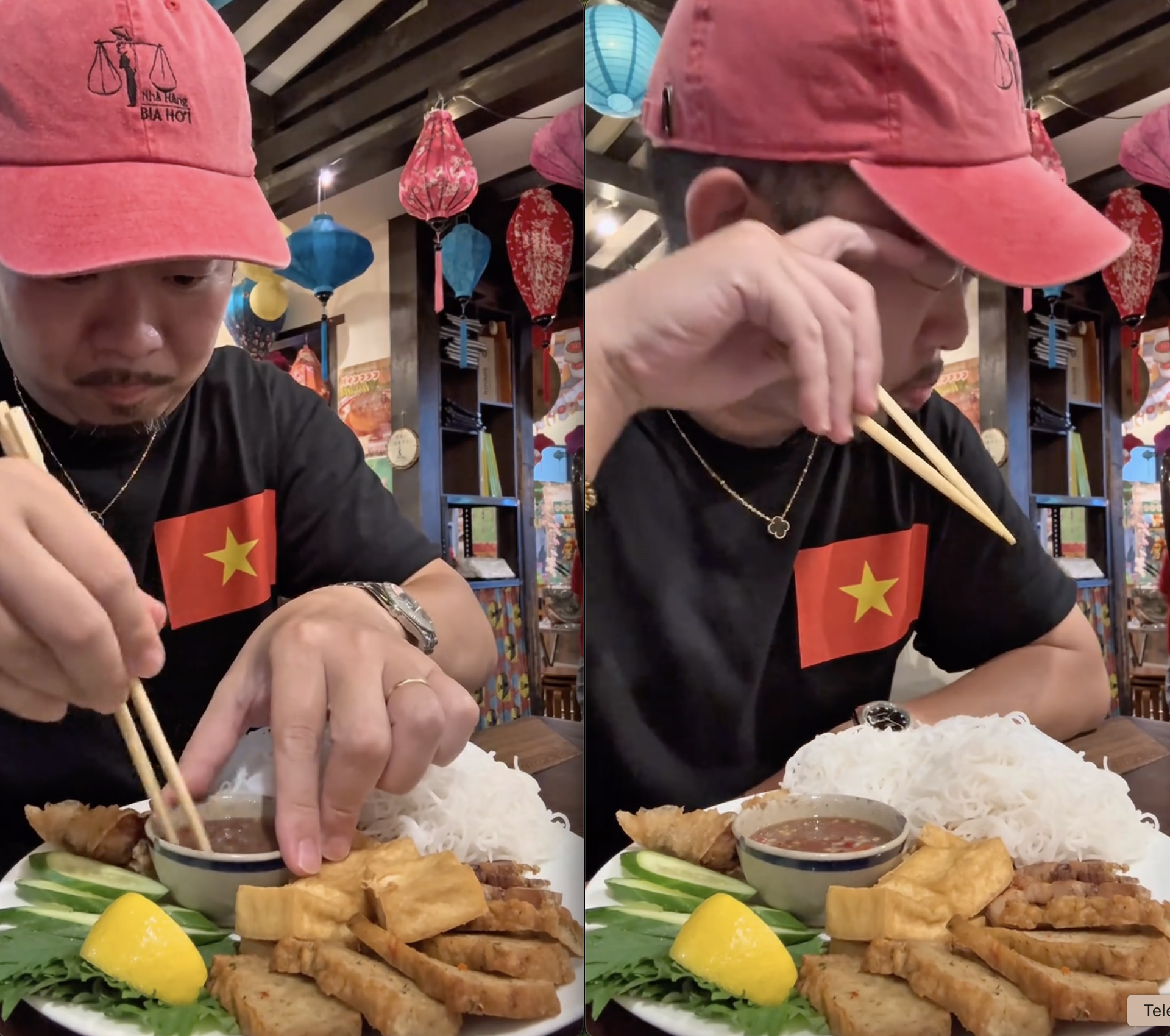 Phía dưới đoạn clip, anh chàng còn viết dòng chú thích khiến ai cũng phải bật cười: “Mắm tôm là chân ái. Không cần gì nhiều, chỉ cần thế là đủ rồi.” Và ngay sau đó là màn thưởng thức “đỉnh của chóp”: mỗi lần gắp miếng đậu giòn, miếng thịt luộc hay bún trắng tinh chấm vào mắm, anh lại xuýt xoa, gật gù, như thể đang được nếm thử tinh hoa ẩm thực thế giới.