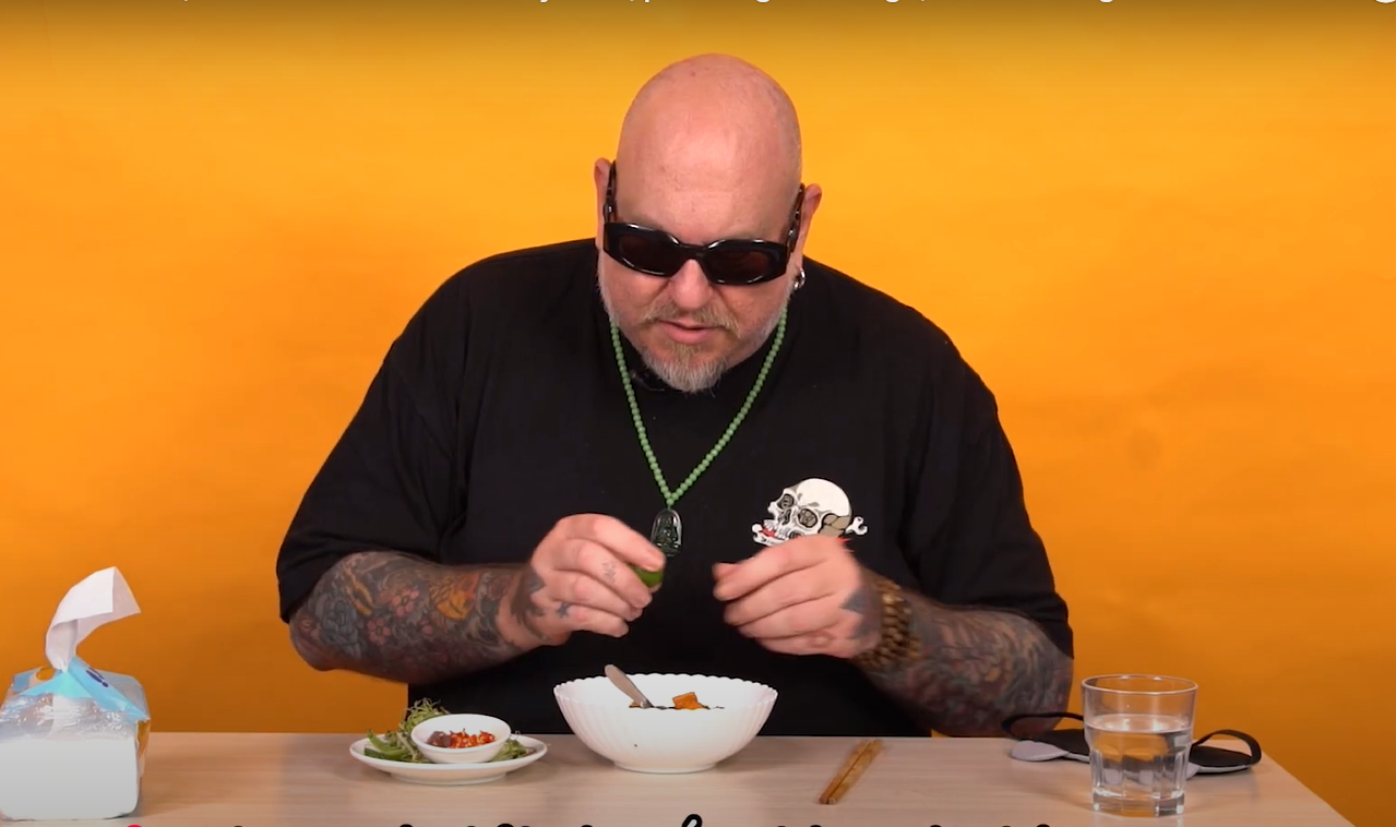 Vị khách Tây còn tiết lộ anh mê món bún Việt Nam này tới nỗi tuần nào cũng phải ăn, và nhất định phải có mắm tôm!