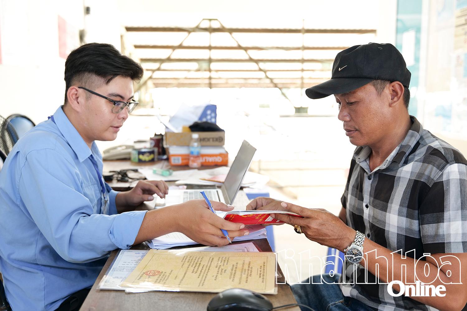Nhân viên Cảng cá Hòn Rớ (phường Nam Nha Trang) thực hiện kiểm tra và xét duyệt thủ tục xuất, nhập bến của chủ tàu cá.