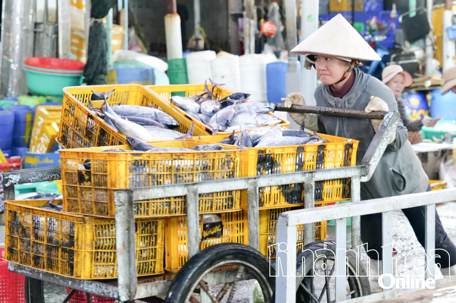 Vận chuyển hải sản tại Cảng cá Đông Hải (phường Đông Hải).
