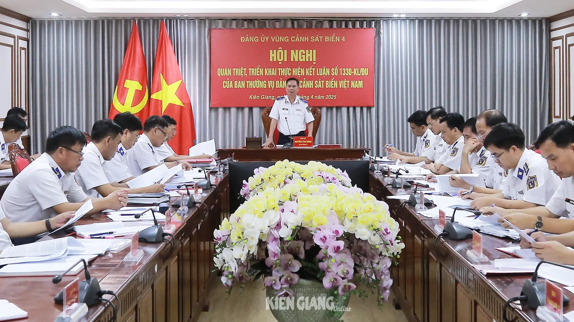 Ngày 11-4, tại TP. Phú Quốc (Kiên Giang), Đảng ủy Vùng Cảnh sát biển 4 tổ chức hội nghị quán triệt, triển khai thực hiện Kết luận số 1330-KL/ĐU, ngày 8-4-2025 của Ban Thường vụ Đảng ủy Cảnh sát biển Việt Nam về tiếp tục đẩy mạnh thực hiện Chỉ thị số 32-CT/TW, ngày 10-4-2024 của Ban Bí thư về tăng cường sự lãnh đạo của Đảng đối với công tác chống khai thác IUU.