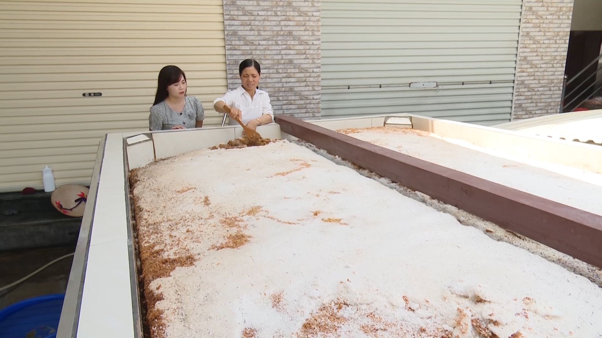 Chị Bùi Thị Tuyết, thôn Nội Lang Nam, xã Nam Hải, huyện Tiền Hải: “Những bể ủ hơn 1 năm được đưa vào xay, hàng ngày cần mở ra để phơi nắng. Màu của mắm tép phải là màu cà thì sau này nước mắm mới chuẩn vị truyền thống thơm ngon”