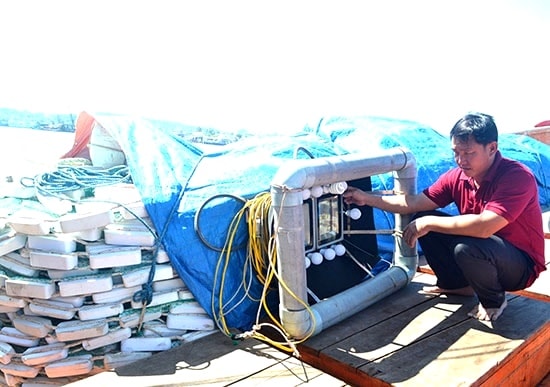 Tàu lưới vây của anh Phi có công suất 822CV, trang bị hệ thống đèn cao áp để nâng cao hiệu quả dẫn dụ đàn cá và nhiều thiết bị hàng hải như máy giám sát hành trình, máy thông tin liên lạc, máy dò cá… và hầm bảo quản hải sản bằng vật liệu P.U.