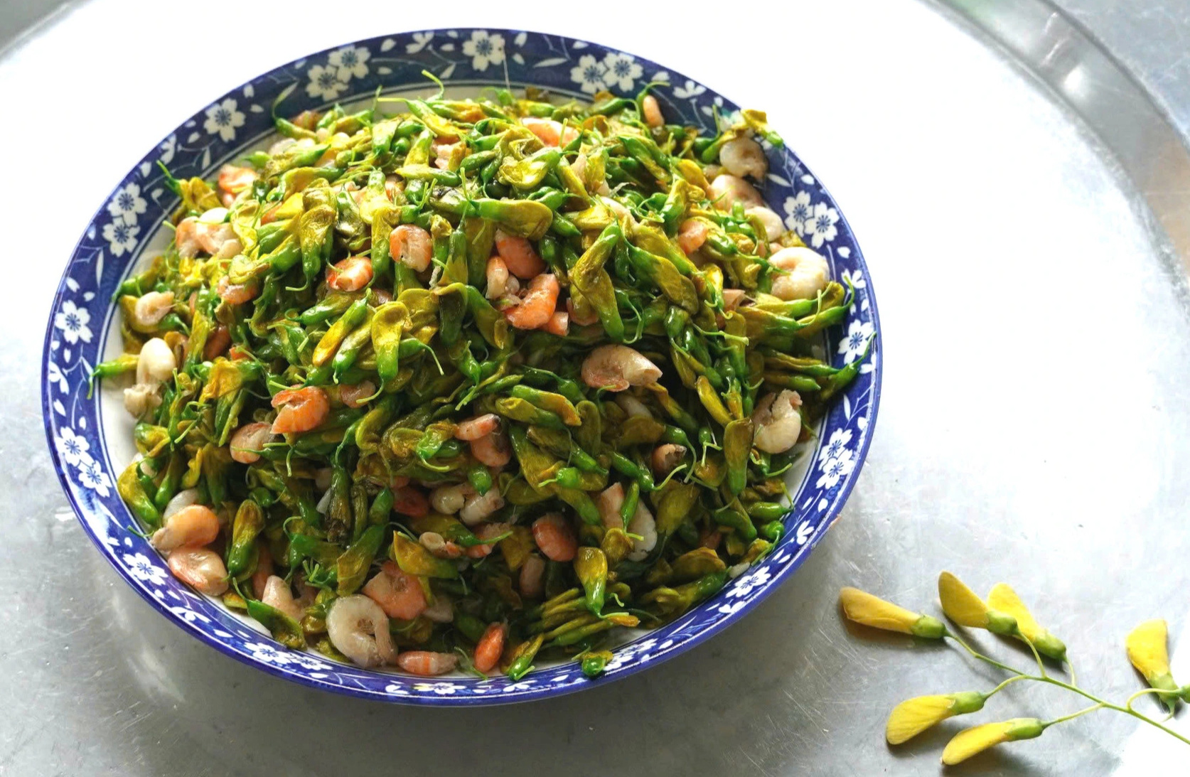 Tép đồng xào bông điên điển đem đến vị ngọt thanh khó quên – Ảnh: PHƯỚC THÀNH