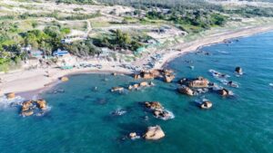 Nơi đây nổi tiếng với làn nước trong xanh, sóng không quá lớn, những bãi đá nhiều màu sắc, hình thù đa dạng nhờ tác động của nước biển và thủy triều.