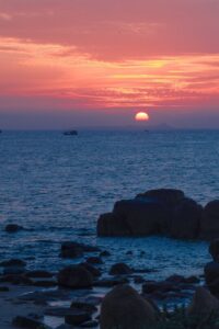 Anh Tường cho biết, du khách cũng có thể cắm trại tại bãi Cổ Thạch, nơi có nhiều dịch vụ hơn rồi buổi sáng đi bộ dọc bờ biển, tìm tới làng chài Mũi Trọ.