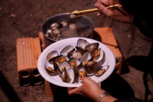 ‘Du khách từ xa tới thì nên trả giá một xíu. Nhìn chung, hải sản ngon và giá phải chăng, ví dụ như hàu giá 35.000 đồng/kg, sò lông 30.000 đồng/kg, mực 220.000 đồng/kg, tôm 250.000 đồng/kg”, anh Tường cho biết.
