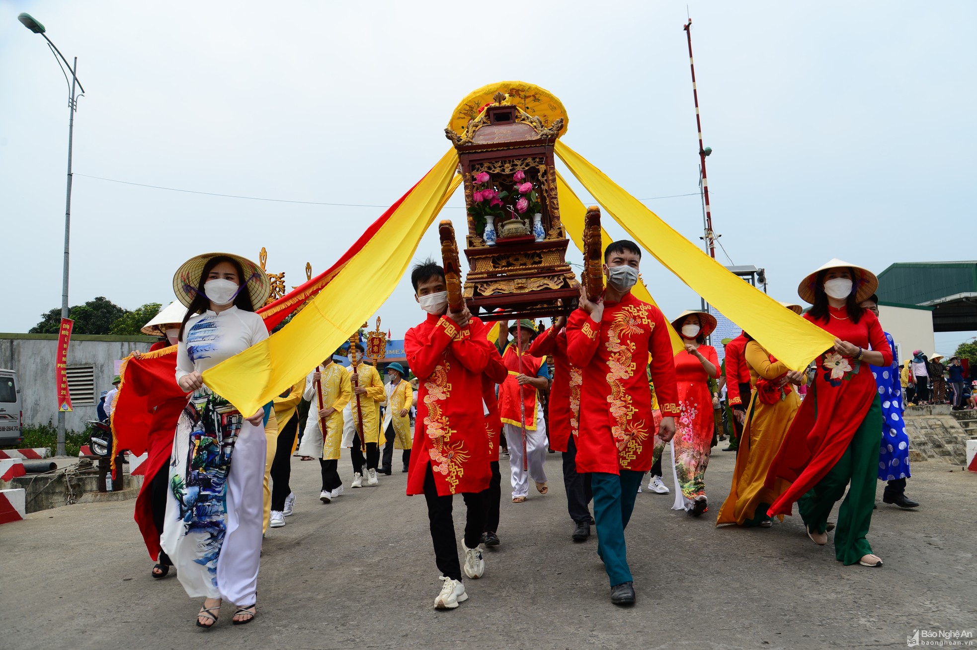 Tiếp đó, dân làng rước dấu ấn của Ngài: Đế vương Sát Hải chàng lại Đại Vương (Thần cai quản biển), Thần cô, Thần Cậu (Thần biển)… ở đền Làng Hiếu ra các thuyền ở cửa lạch để làm lễ phùng nghinh. Lễ rước hoành tráng bắt đầu từ đền Làng Hiếu, diễu hành qua đường lộ chính về phía cầu mới Cửa Hội, sau đó đoàn rước tiếp tục theo đường ven cửa biển đề về bến cảng trung tâm.