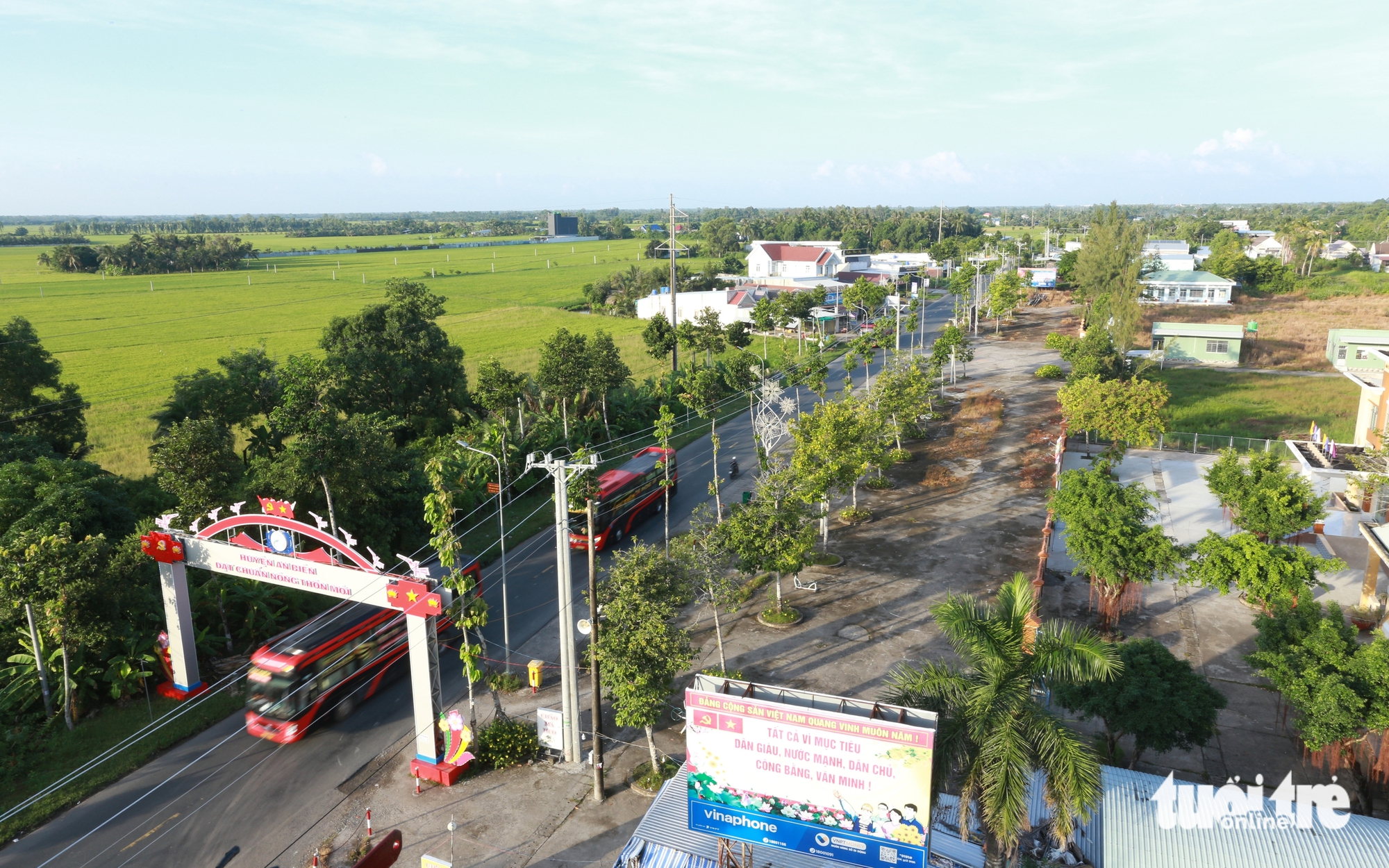 An Biên, cửa ngõ vào Miệt Thứ, quê hương nhà văn Sơn Nam hiện nay đã xanh ngát ruộng vườn, không còn hoang vu như thời xưa ông kể – Ảnh: QUỐC VIỆT