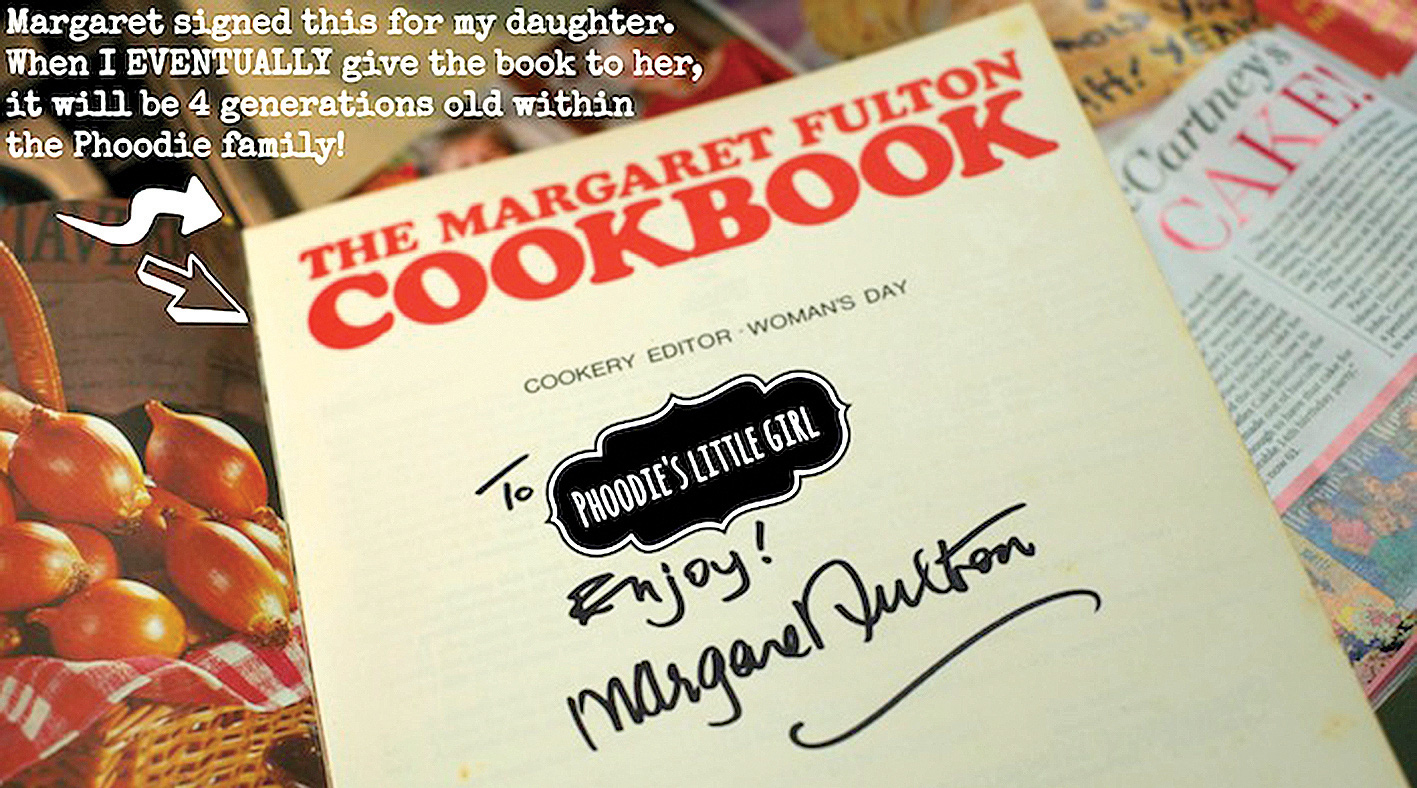 Blogger ẩm thực Úc Phoodie chia sẻ tấm ảnh quyển The Margaret Fulton có chữ ký của tác giả. Phoodie sẽ tặng quyển sách này cho con gái, và qua đó, truyền tiếp quyển sách này sang thế hệ thứ 4 trong gia đình.