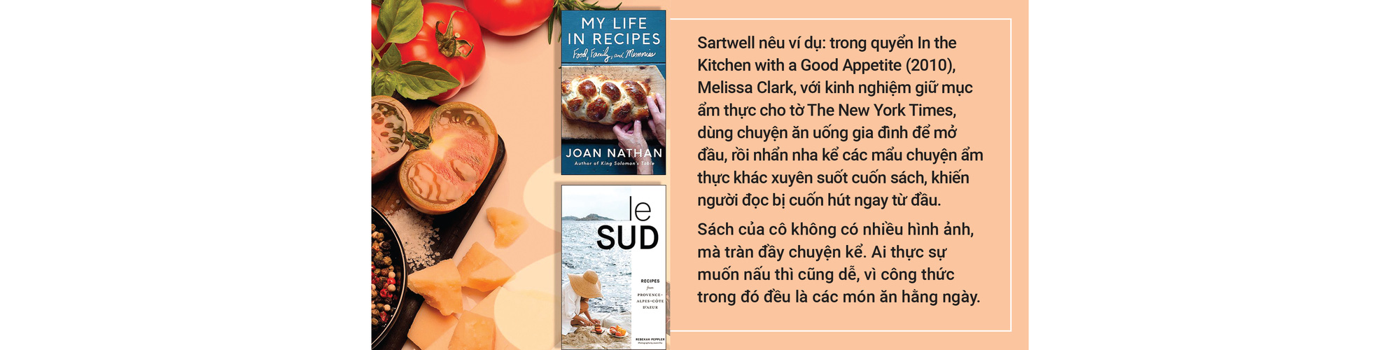 Cụ thể, theo cây bút ẩm thực này, trước đây những cuốn sách kinh điển như French Country Cooking (1951), Mastering the Art of French Cooking (1961) hay The Classic Italian Cookbook (1973) đã cung cấp kiến thức cơ bản cho nhiều thế hệ đầu bếp từ nghiệp dư đến chuyên nghiệp với các công thức món Pháp, Ý, cùng hướng dẫn và một số bối cảnh văn hóa cơ bản.