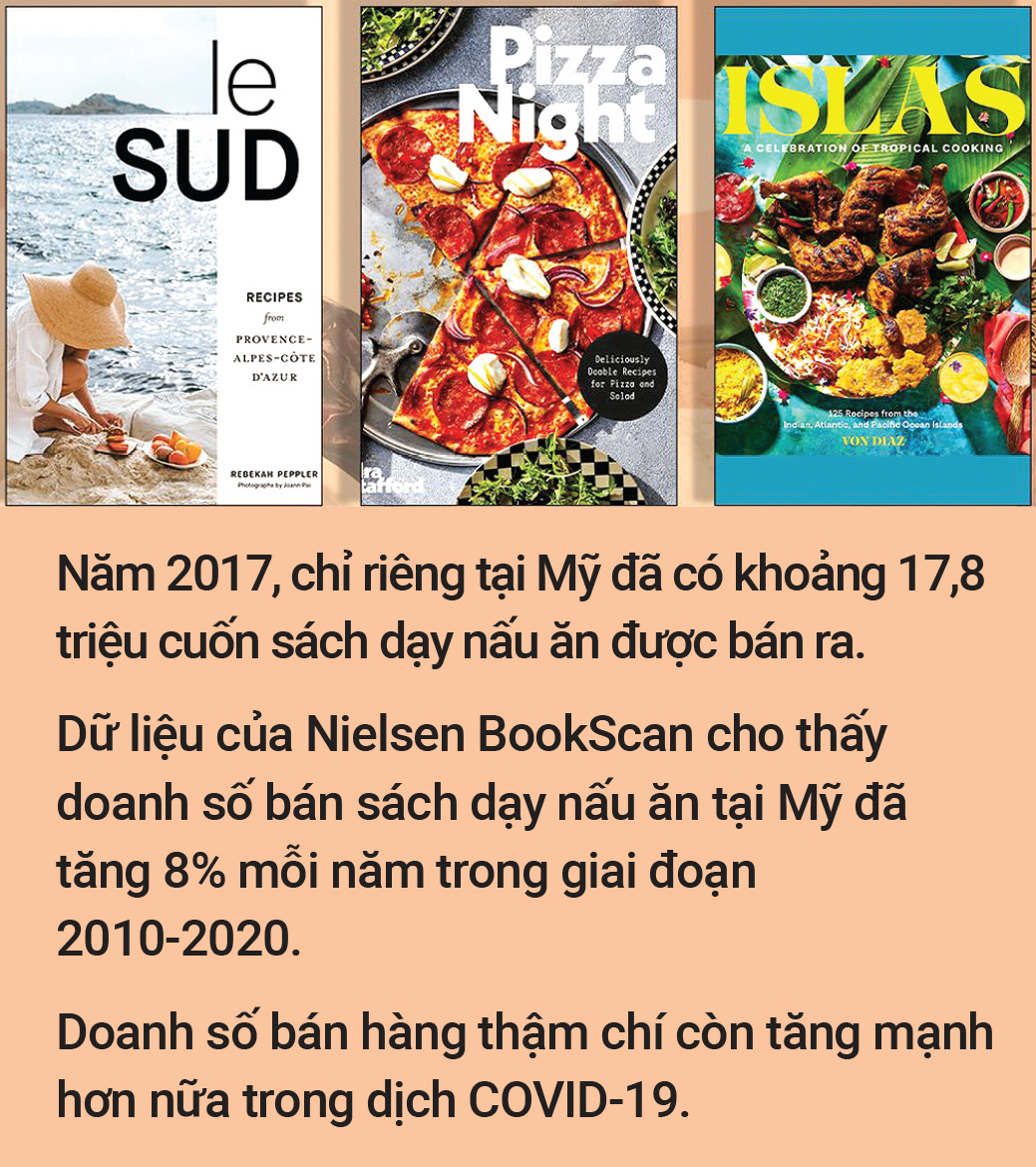 Dù không còn vị trí siêu sao như trước khi có dạy nấu ăn trên truyền hình hay công thức tràn lan trên mạng, sách dạy nấu ăn vẫn là mặt hàng bán được, dù không phải ai mua về cũng để học theo.