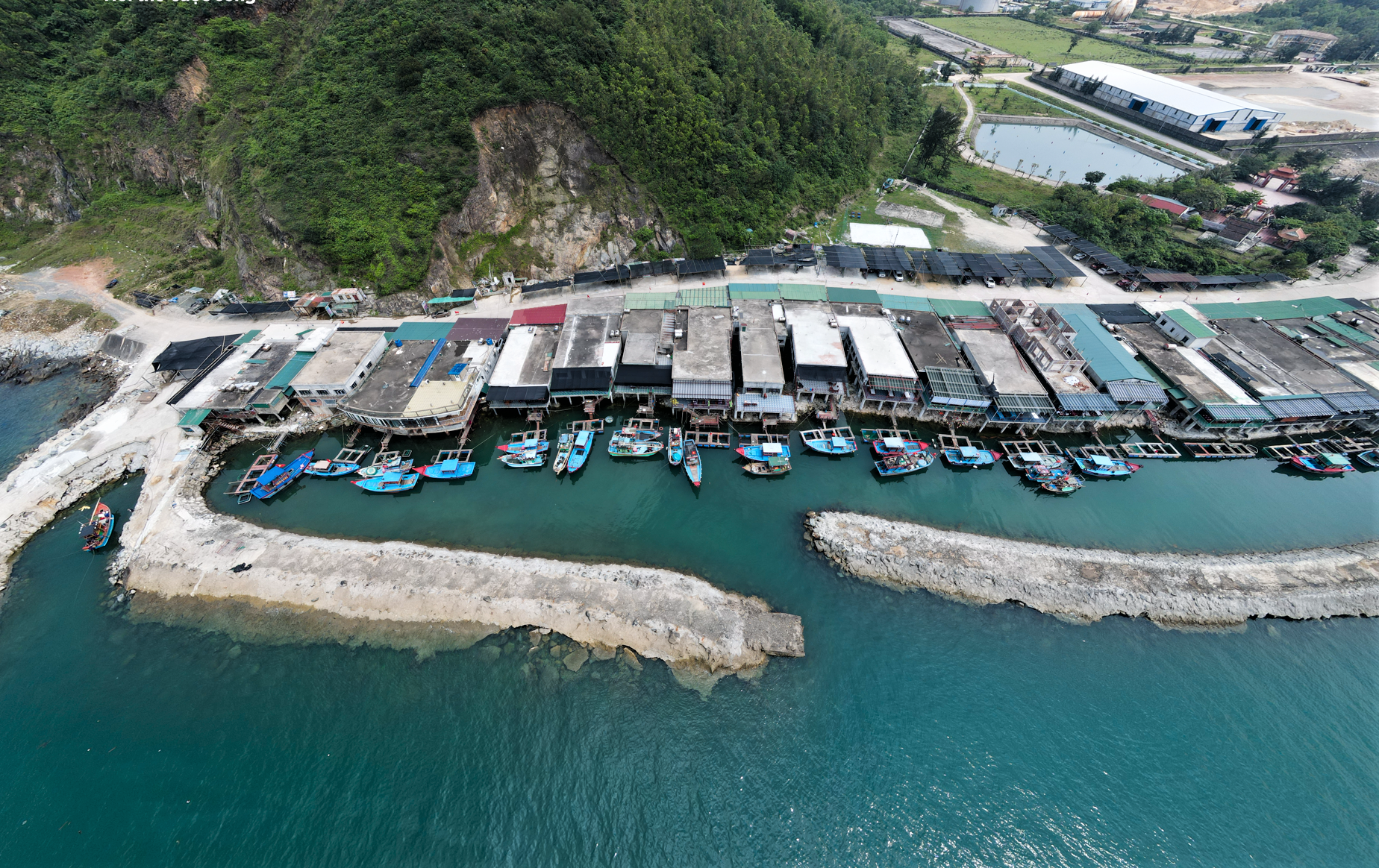Dãy nhà bè kinh doanh mực nhảy Vũng Áng ở Eo Bạch ẢNH: PHẠM ĐỨC