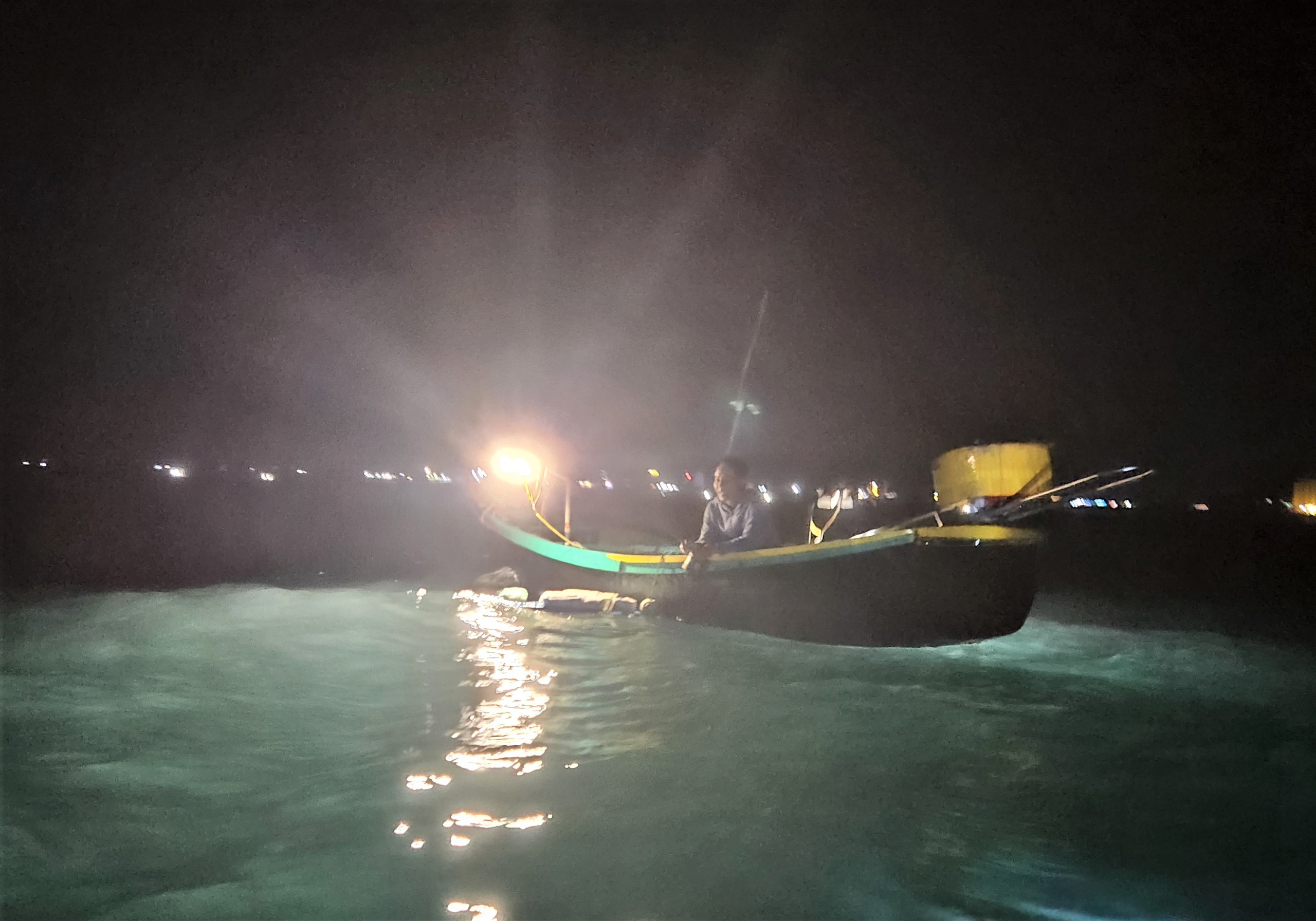 Càng về khuya, mặt biển Thiên Cầm càng trở nên náo nhiệt lạ thường. Giữa màn đêm mênh mông, hàng chục chiếc nan, thuyền thúng đồng loạt lên đèn dụ mực, kết thành một thành phố nổi rực rỡ, lung linh soi rõ mặt sóng. Tiếng máy nổ giòn, tiếng gọi nhau í ới của ngư dân phá tan cái tĩnh mịch của đại dương.